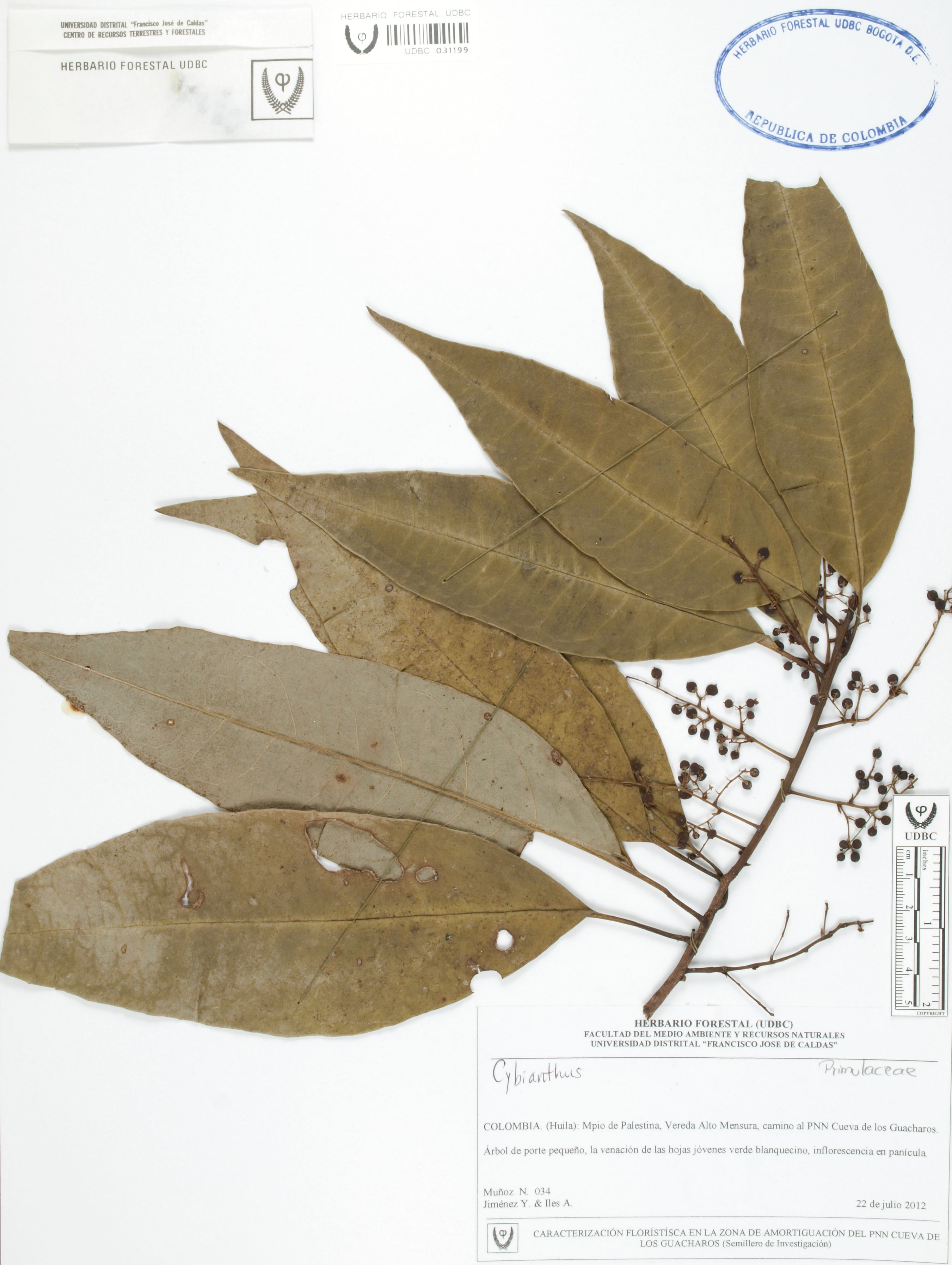 | dc.description | Fotografía del ejemplar Muñoz, N. 34, determinado como Cybianthus sp. | |