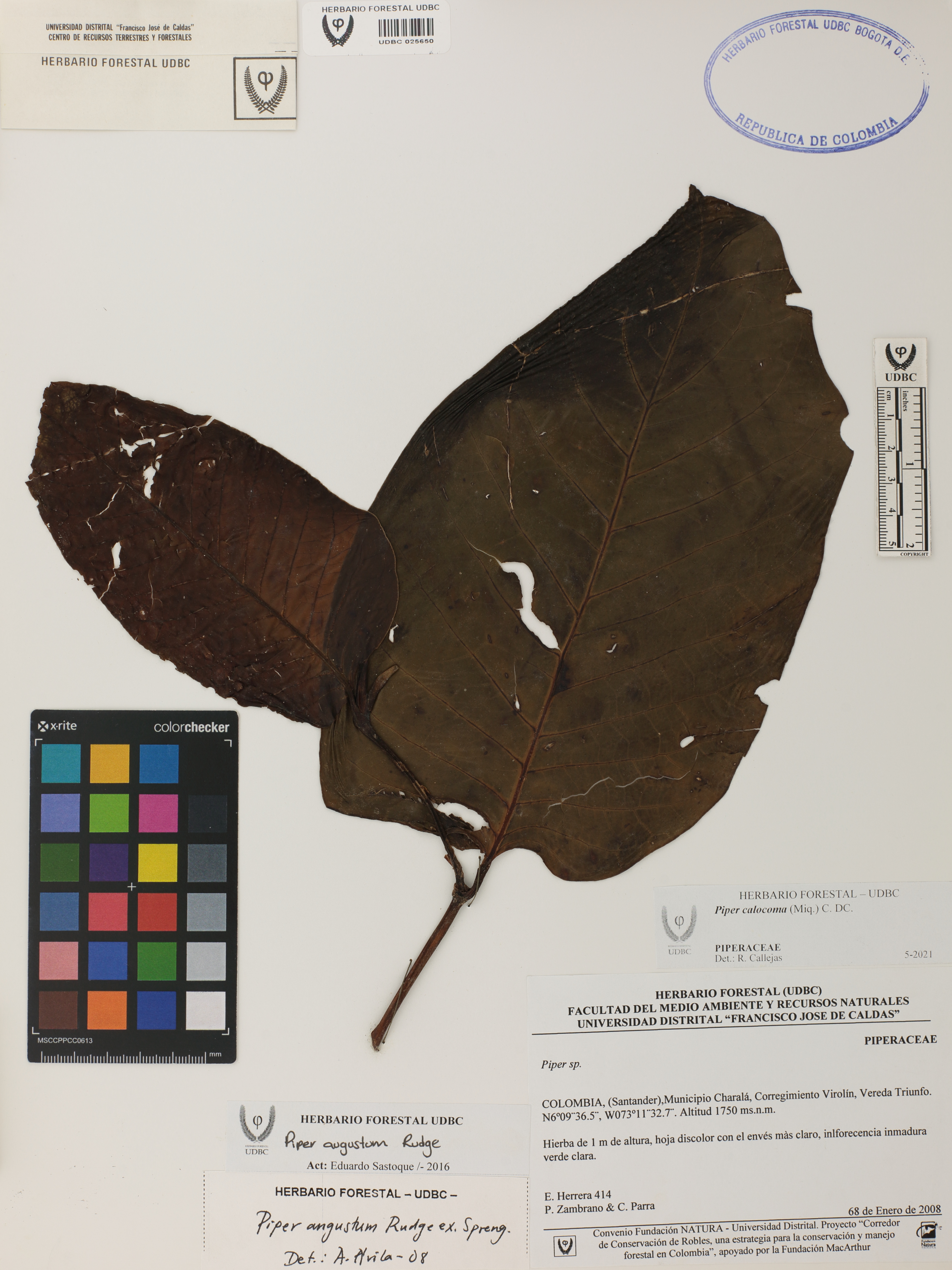 | dc.description | Fotografía del ejemplar Herrera, E. 414, determinado como Piper calocoma en el año 2021 | |