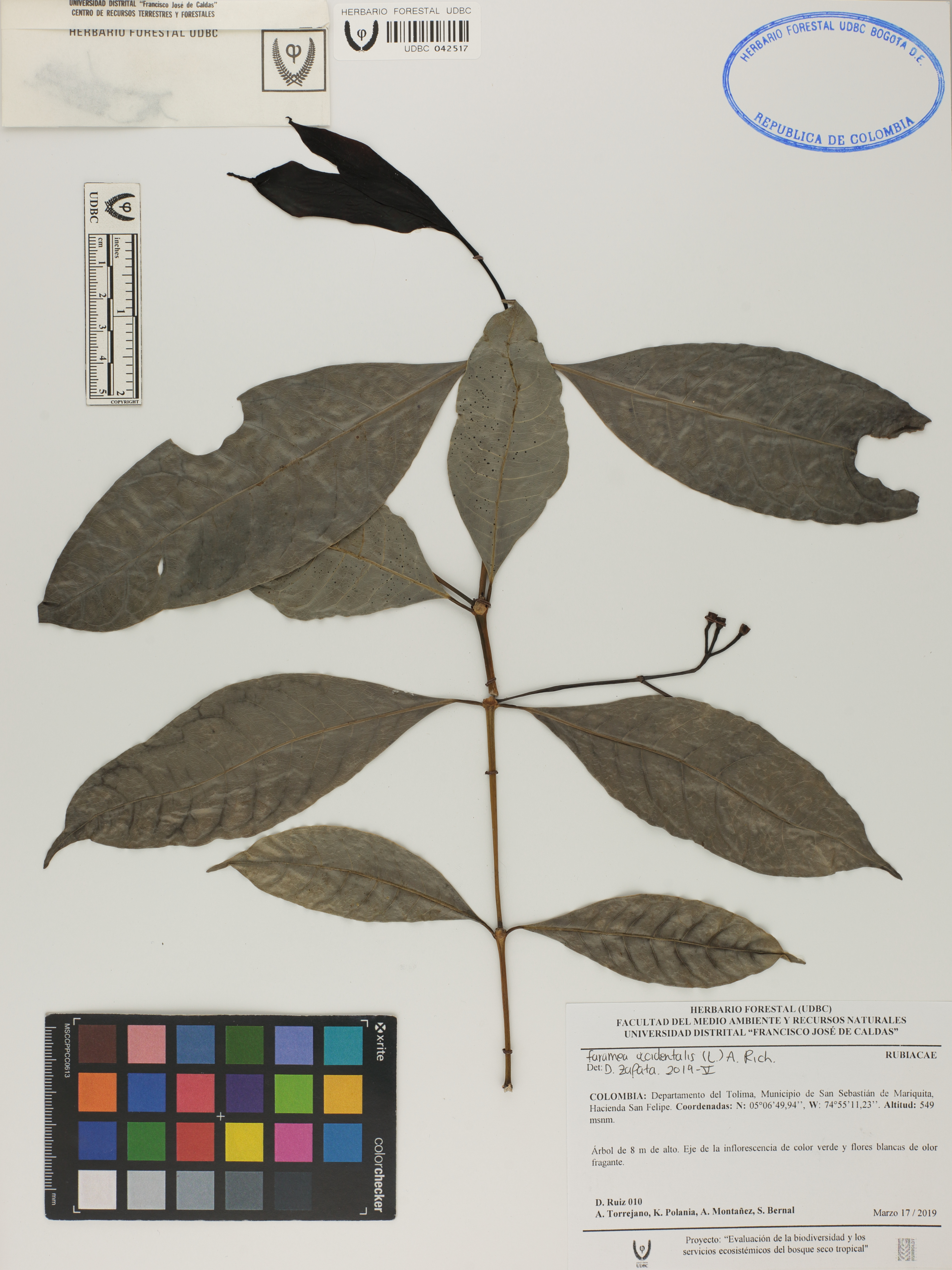 | dc.description | Fotografía del ejemplar Ruiz, D. 10, determinado como Faramea occidentalis en el año 2019 | |
