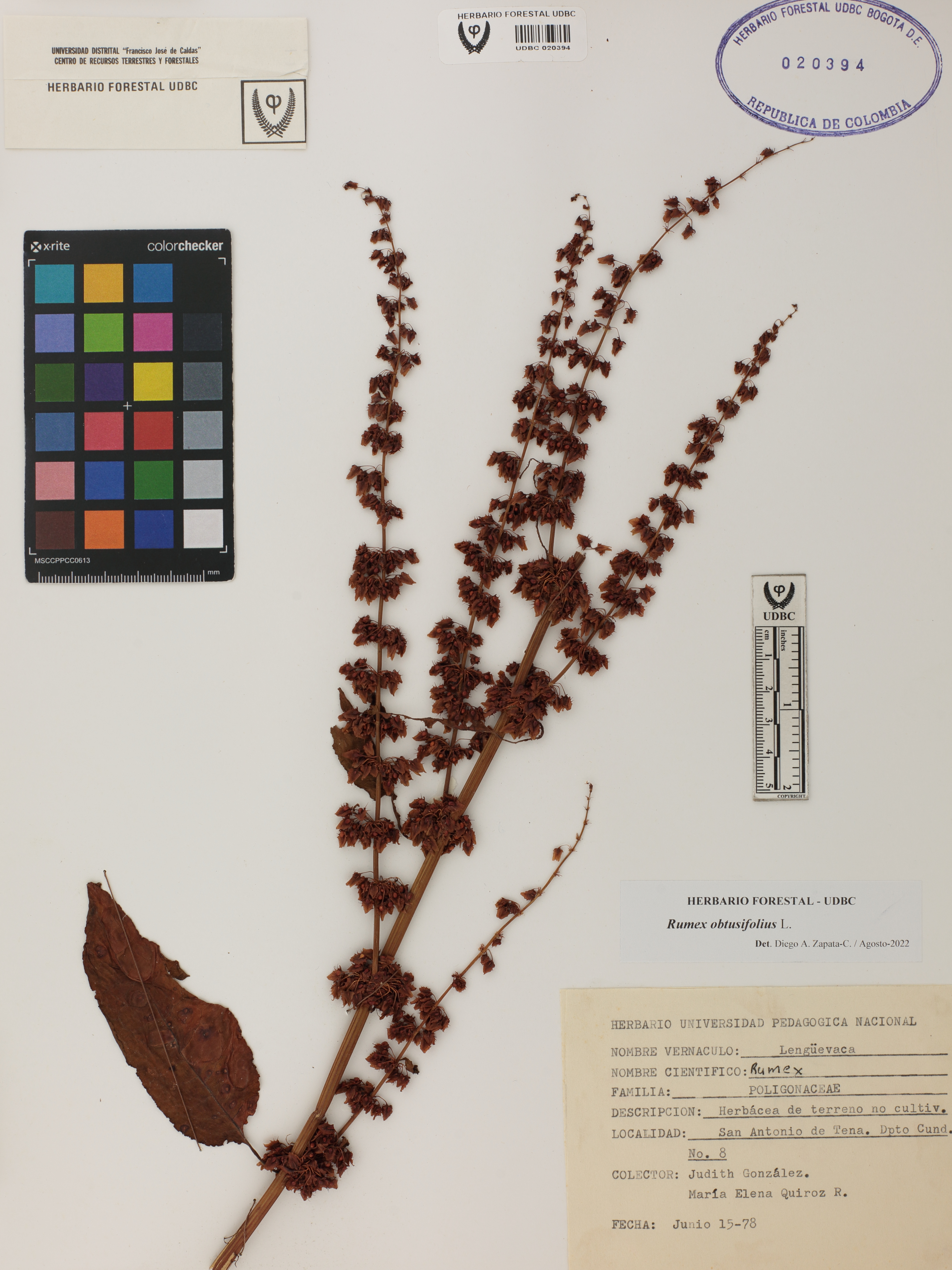 Fotografía del ejemplar González, J. 8, determinado como Rumex obtusifolius en el año 2022