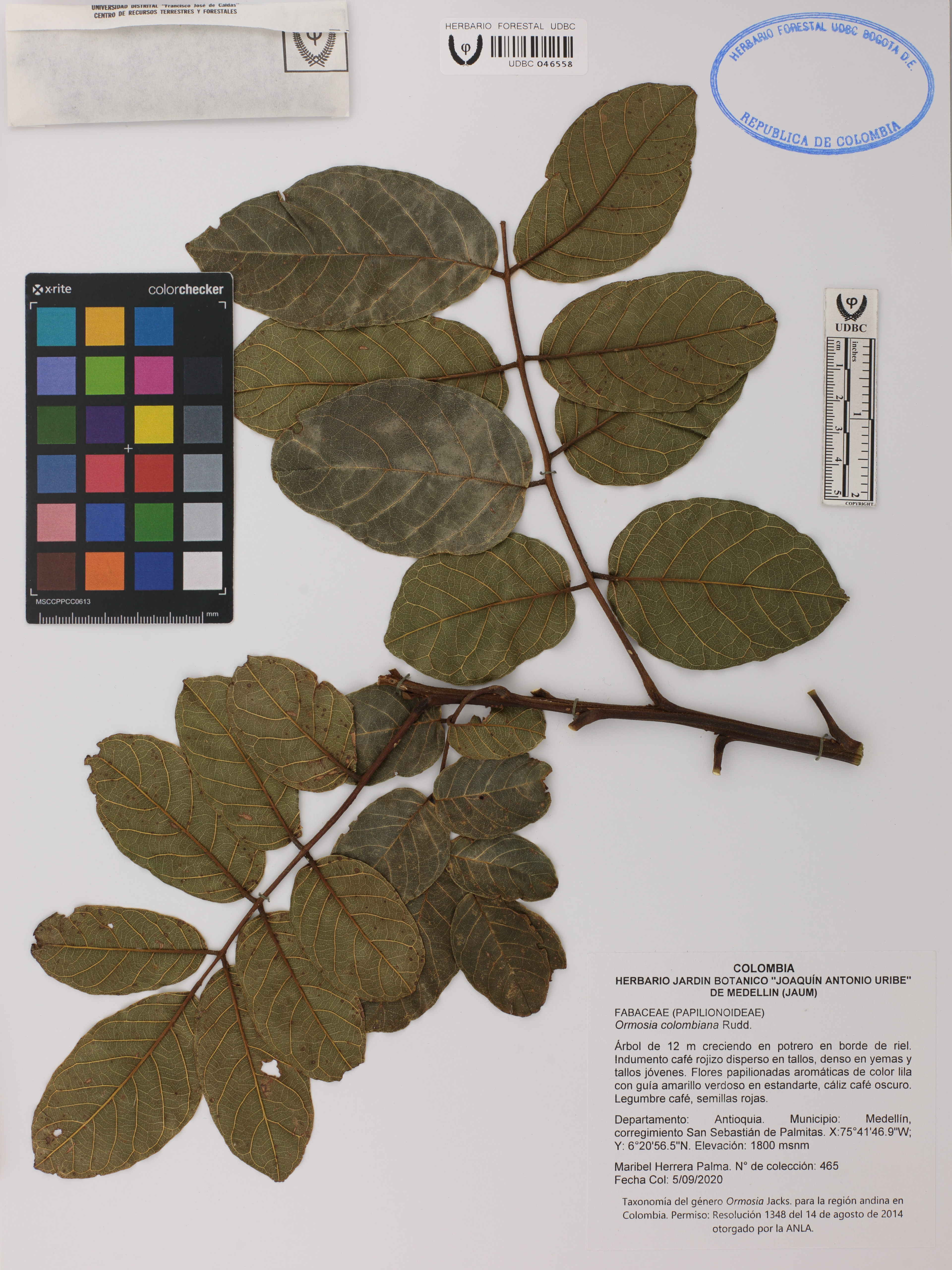 Fotografía del ejemplar Herrera-Palma, M. 465, determinado como Ormosia colombiana en el año 2020