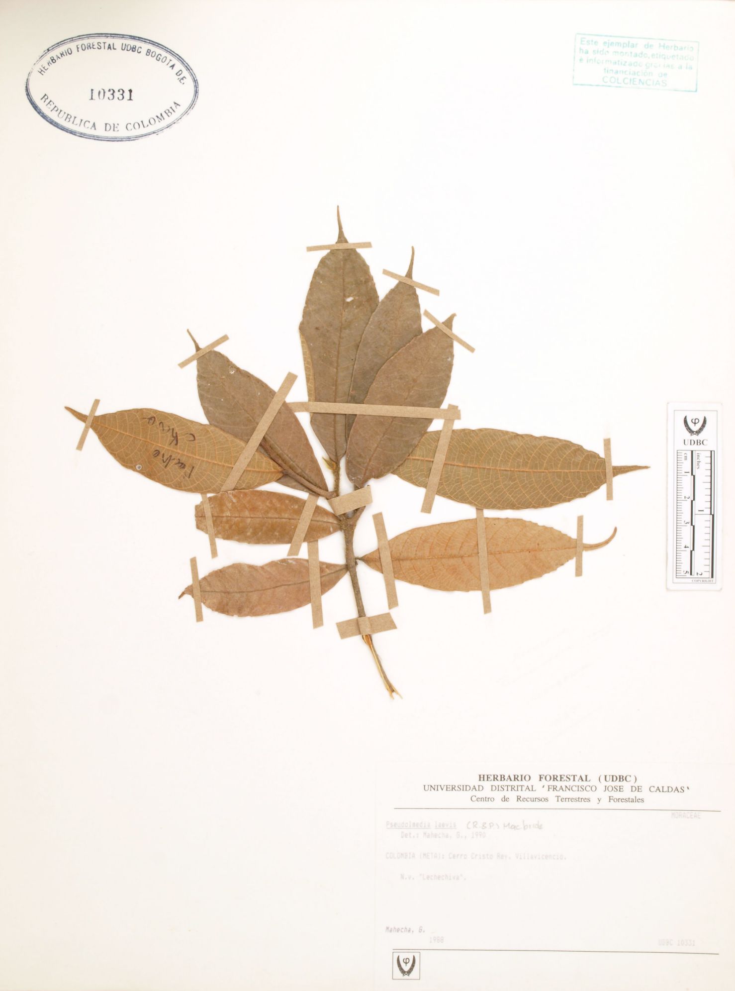Fotografía del ejemplar Mahecha, G., determinado como Pseudolmedia laevis en el año 1990