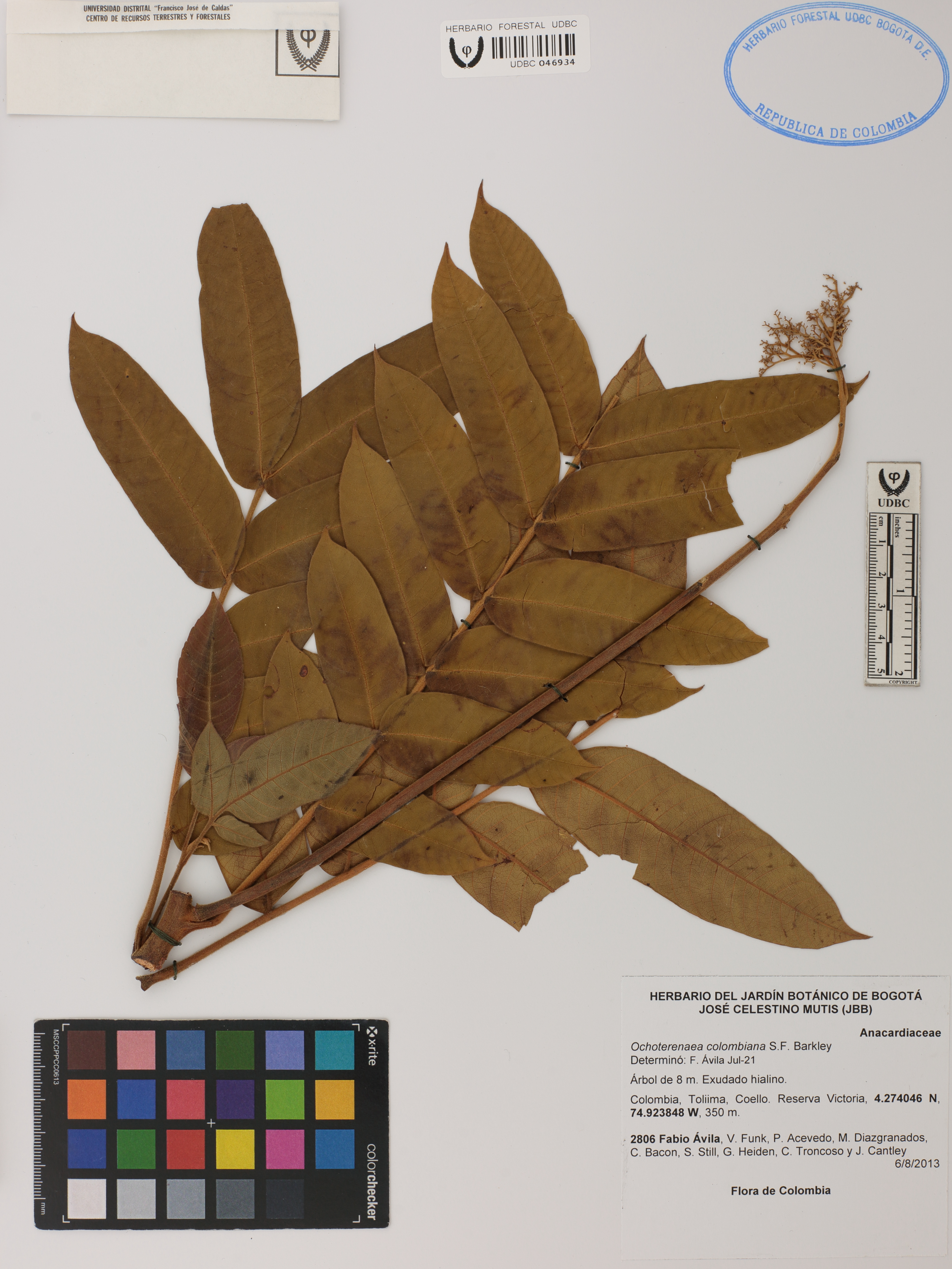 Fotografía del ejemplar Ávila, F. 2806, determinado como Ochoterenaea colombiana en el año 2021