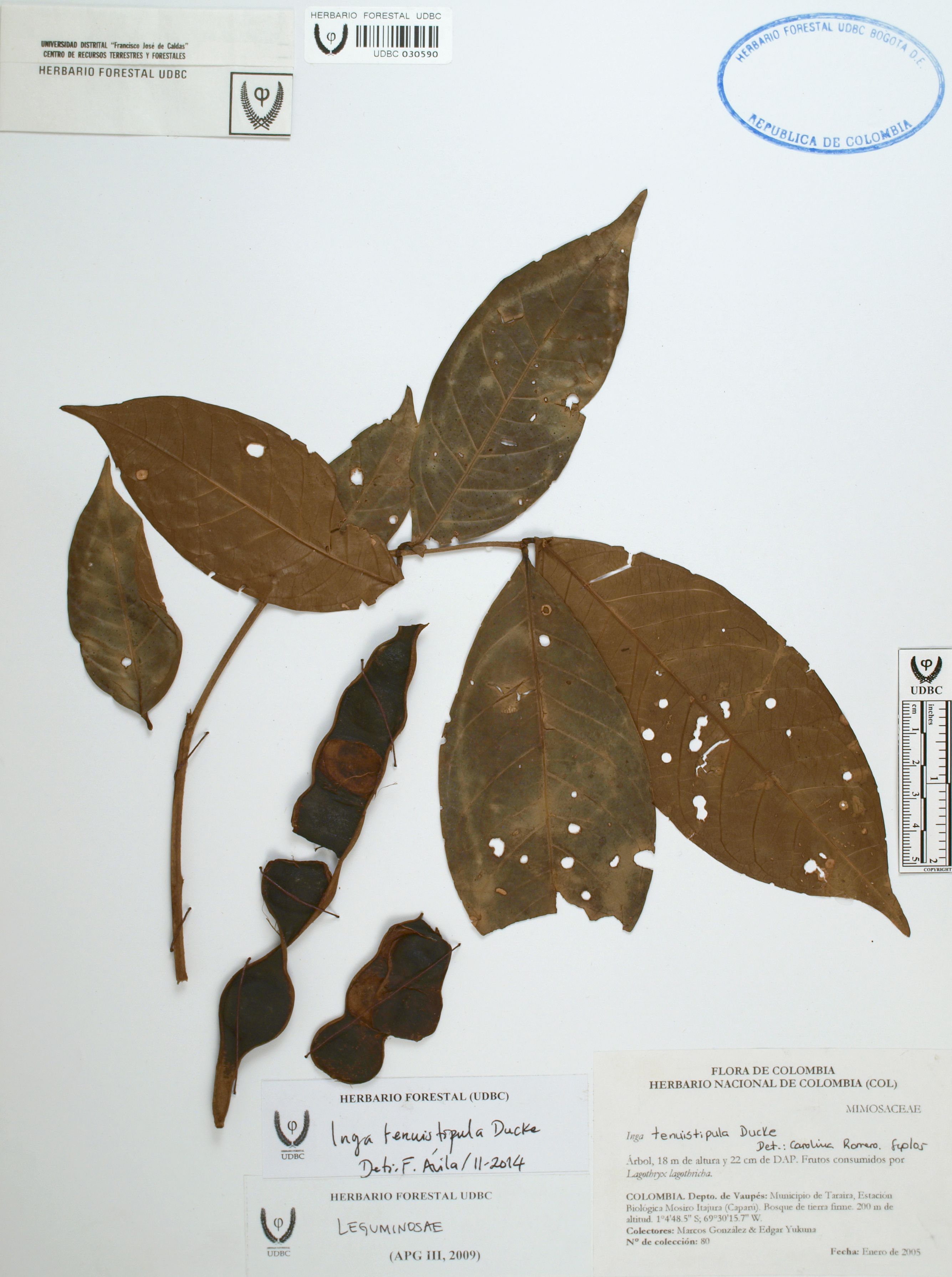 Fotografía del ejemplar González, M. 80, determinado como Inga tenuistipula en el año 2014