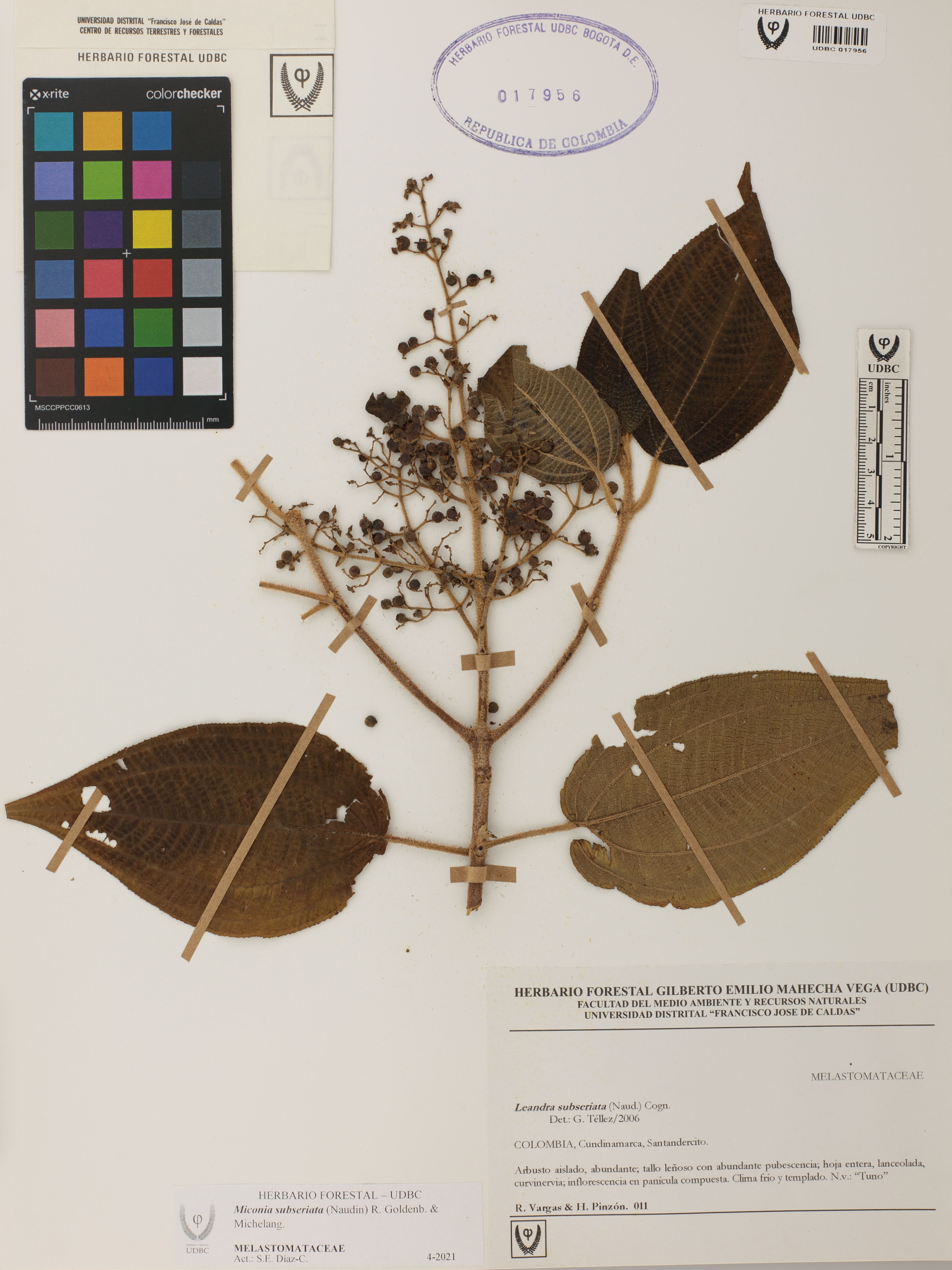 Fotografía del ejemplar Vargas, R. 11, determinado como Miconia subseriata en el año 2006