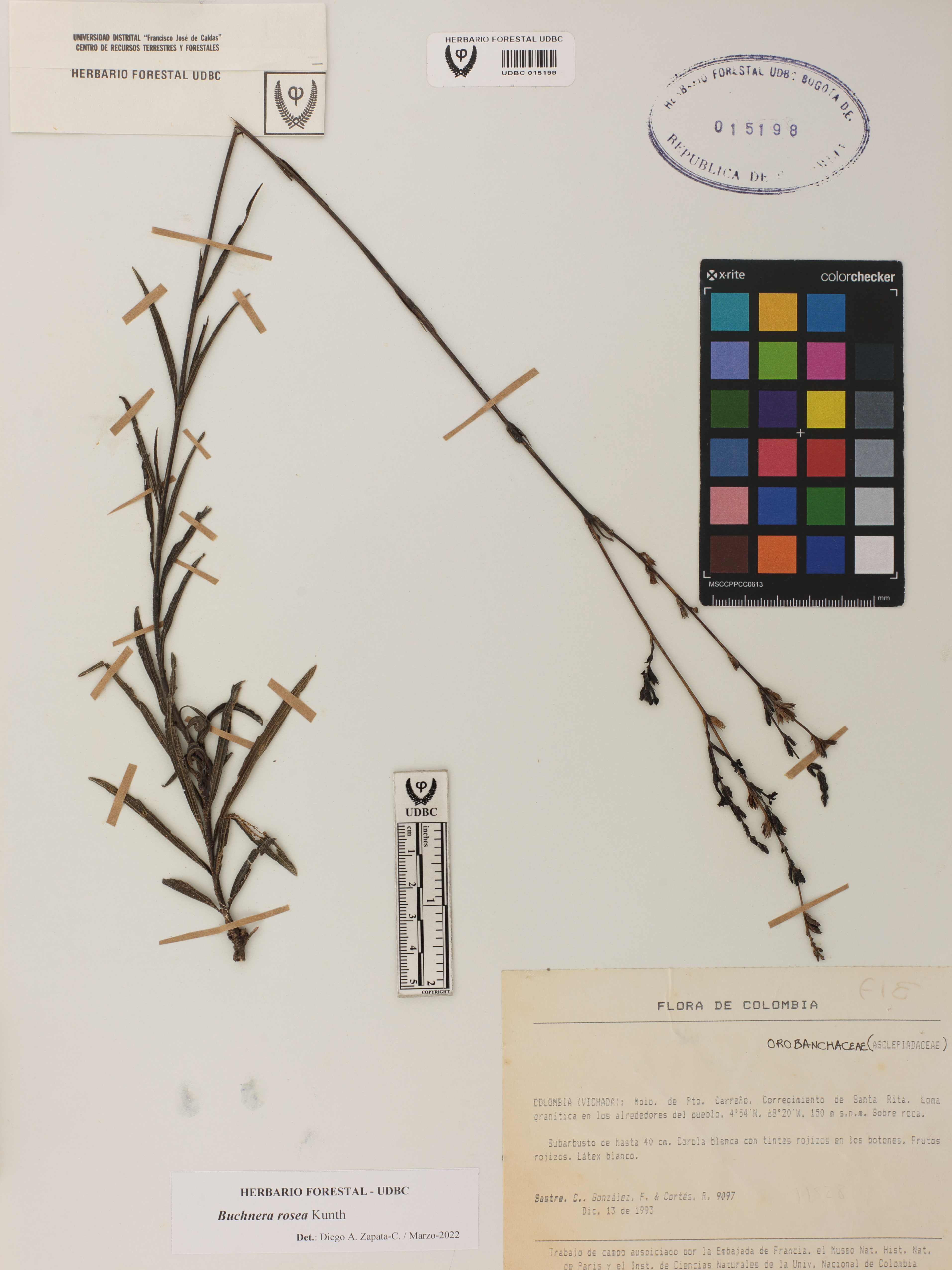 Fotografía del ejemplar Sastre, C. 9097, determinado como Buchnera rosea en el año 2022