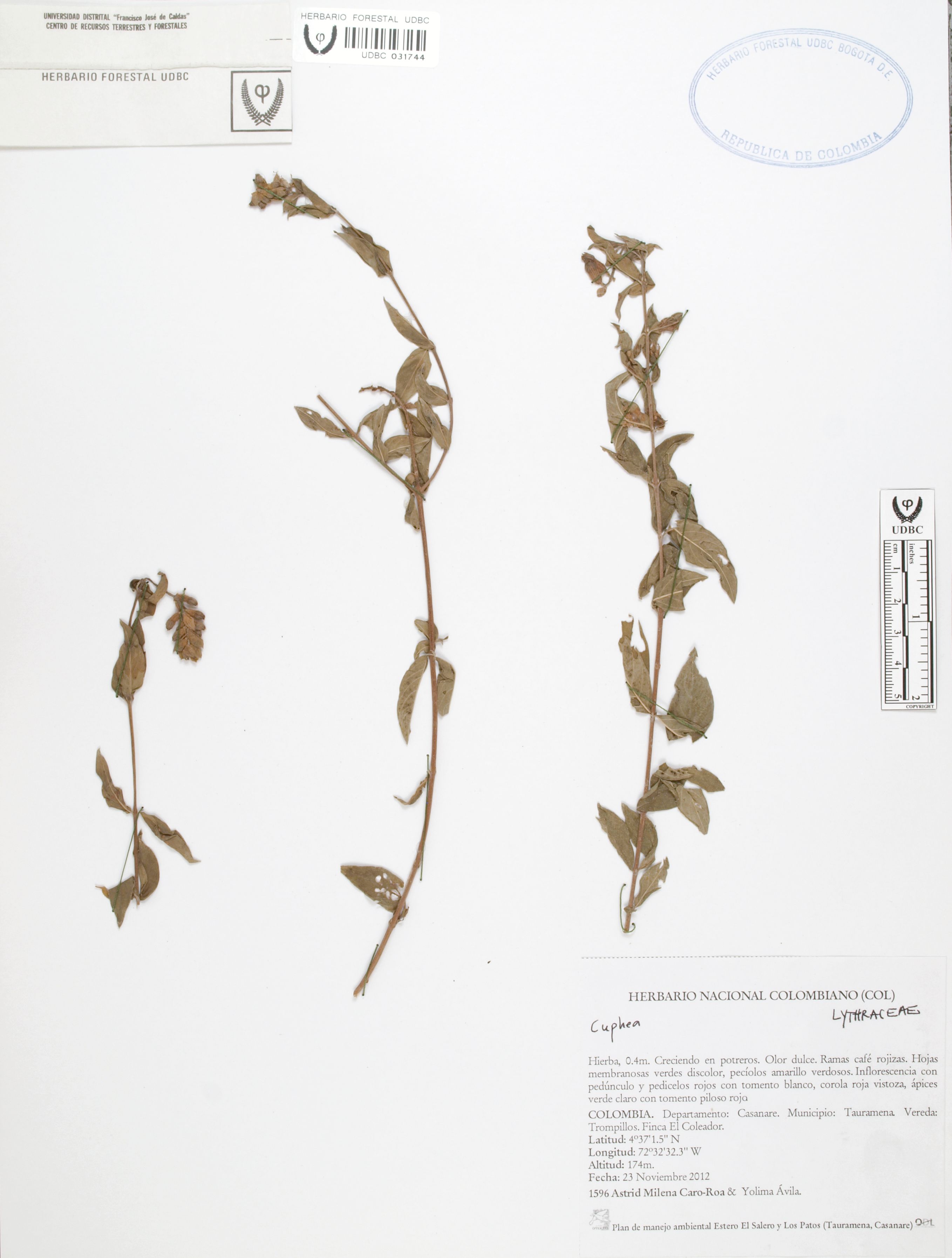 Fotografía del ejemplar Caro-Roa, A. 1596, determinado como Cuphea sp.