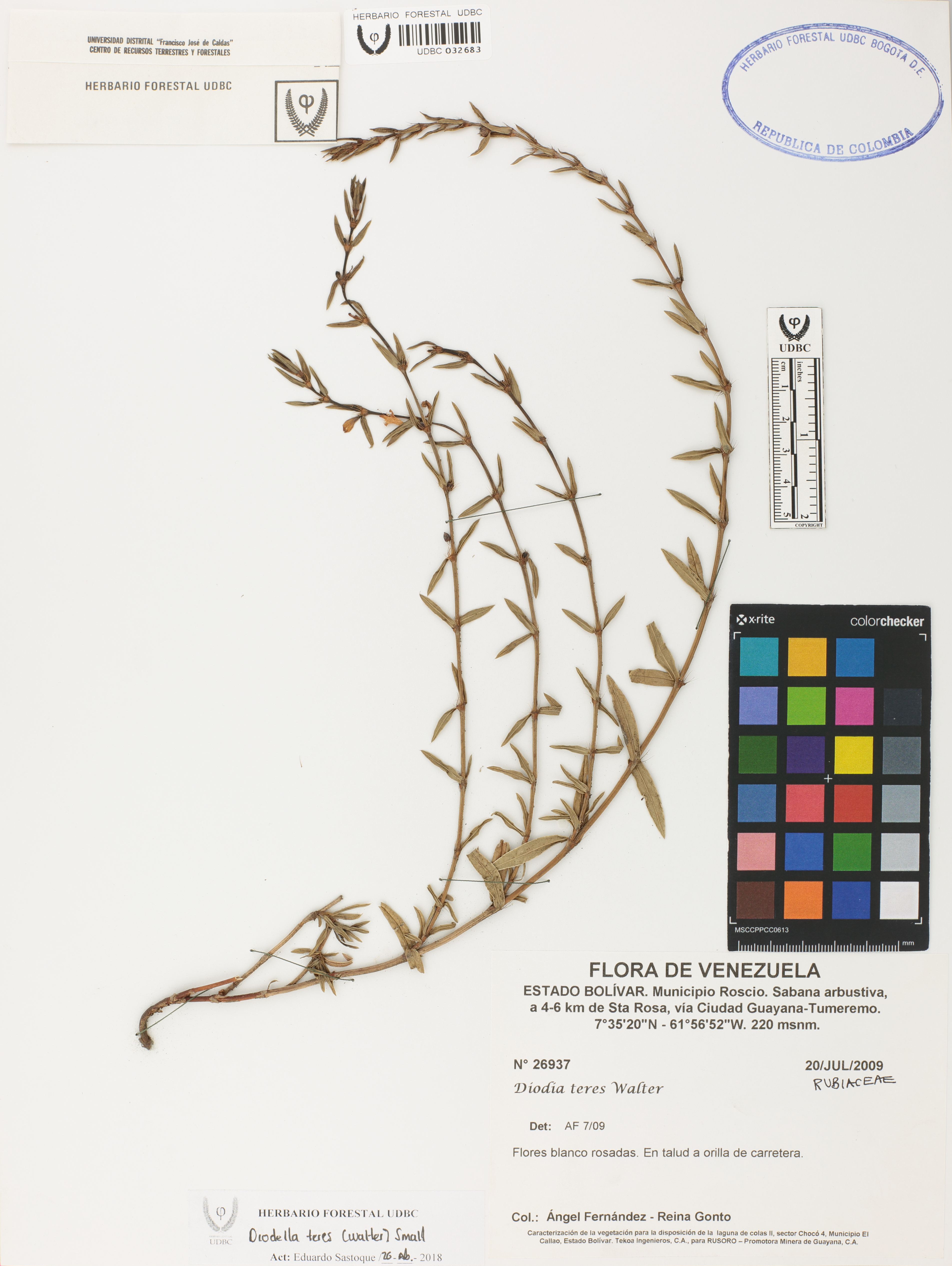 Fotografía del ejemplar Fernández, A. 26937, determinado como Diodella teres en el año 2009
