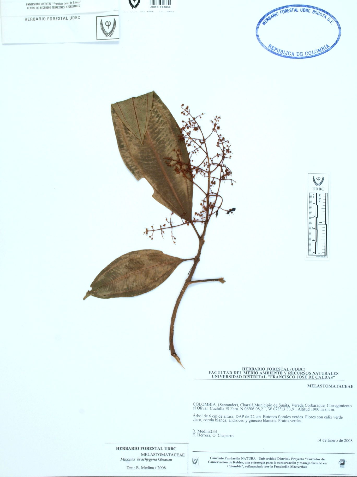 | dc.description | Fotografía del ejemplar Medina, R. 244, determinado como Miconia brachygyna en el año 2008 | |