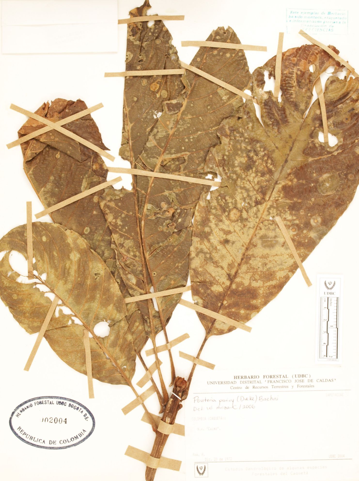 Fotografía del ejemplar Roa, A., determinado como Pouteria pariry en el año 2006