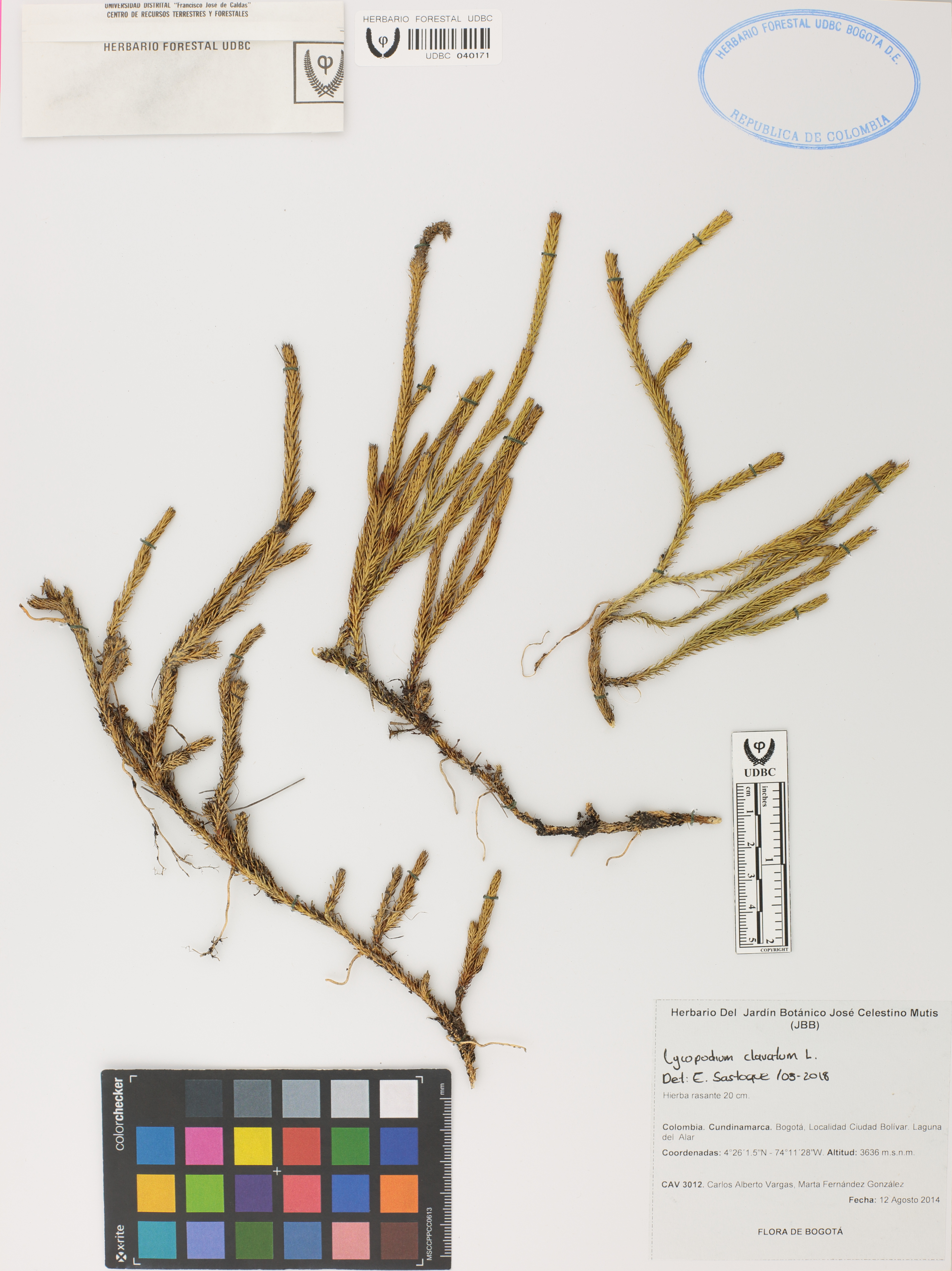 Fotografía del ejemplar Vargas, C. 3012, determinado como Lycopodium clavatum en el año 2018