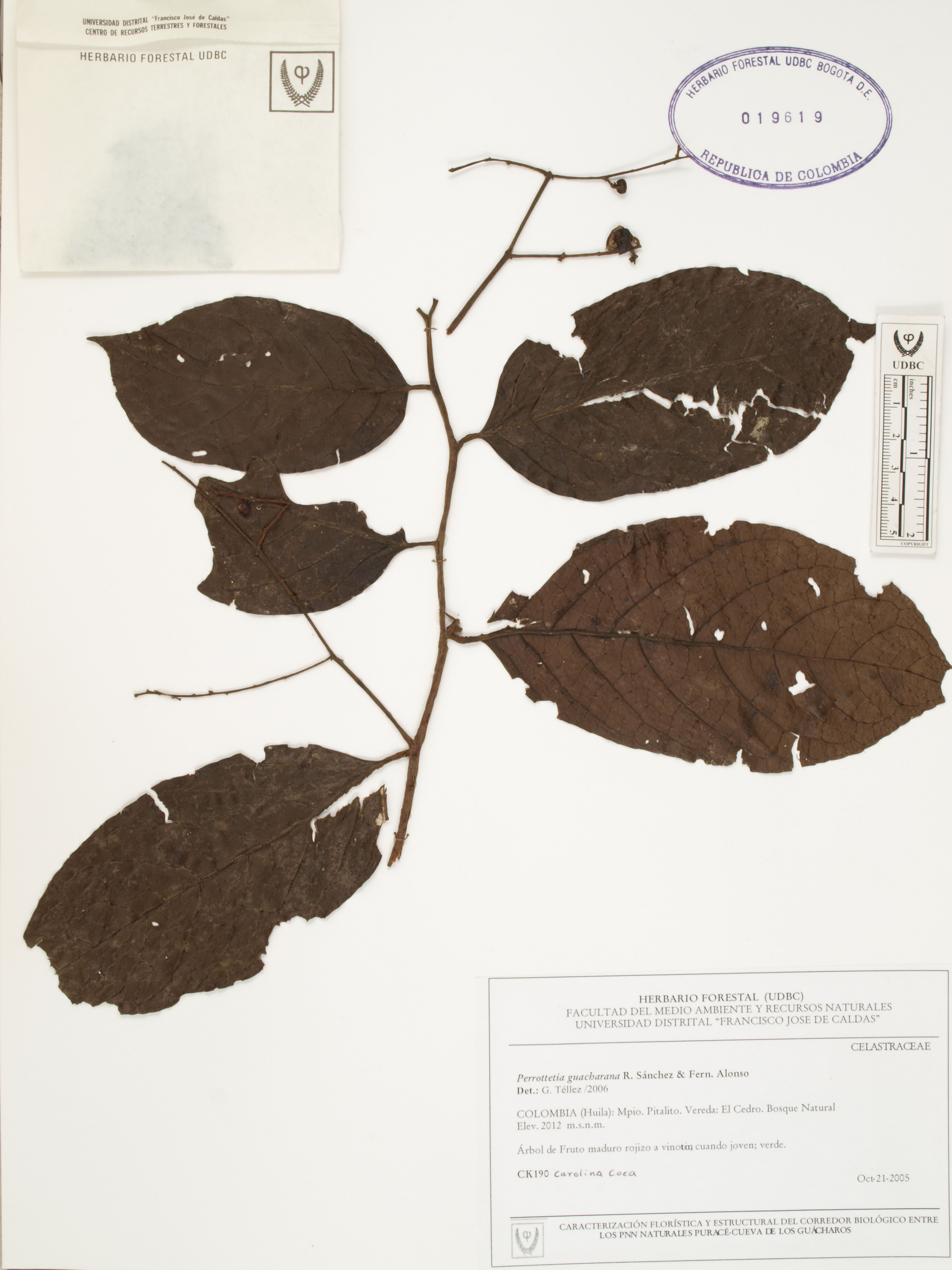 Fotografía del ejemplar Coca, C. 190, determinado como Perrottetia guacharana en el año 2006
