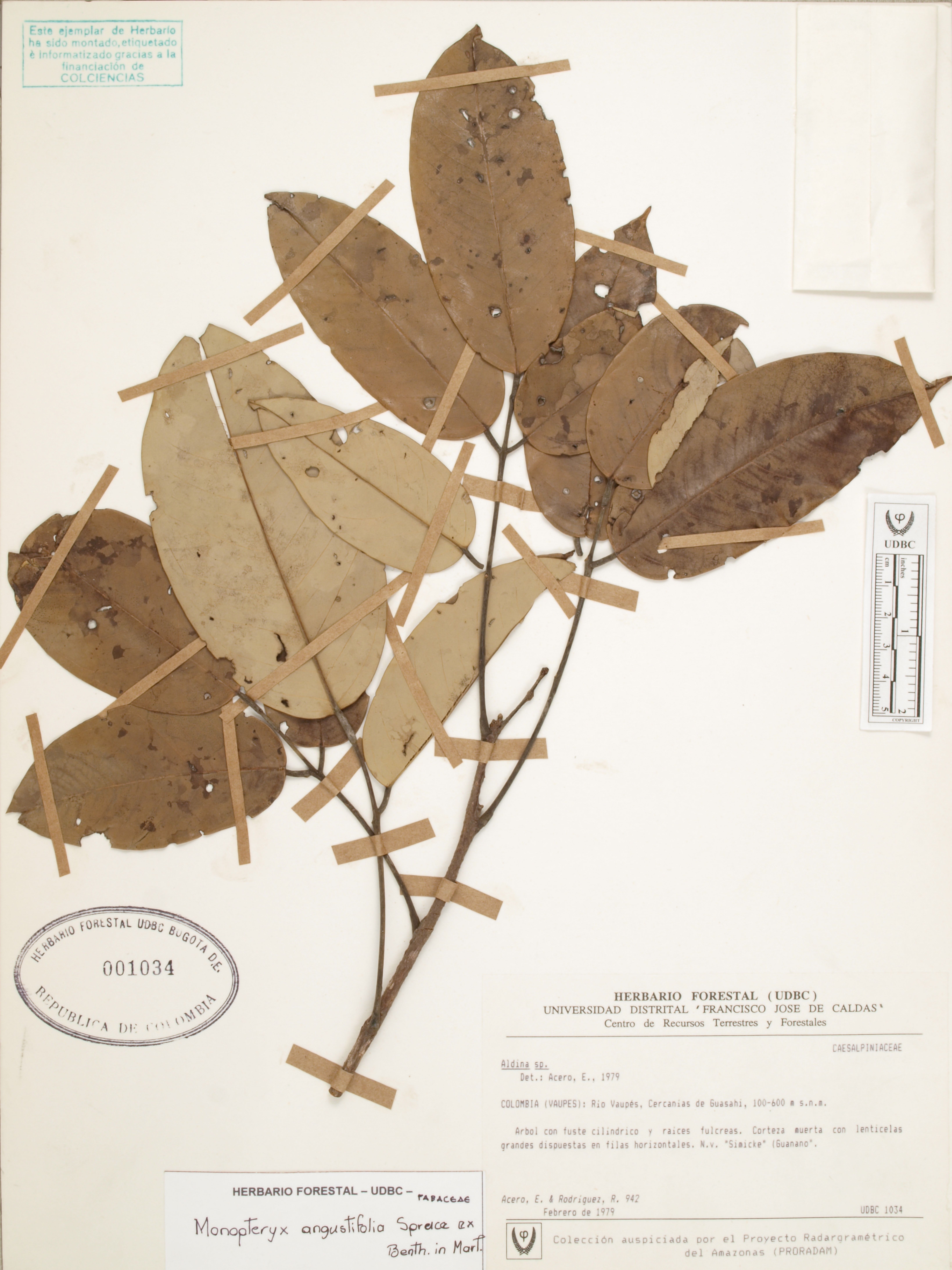 | dc.description | Fotografía del ejemplar Rodríguez, R. 942, determinado como Monopteryx angustifolia | |