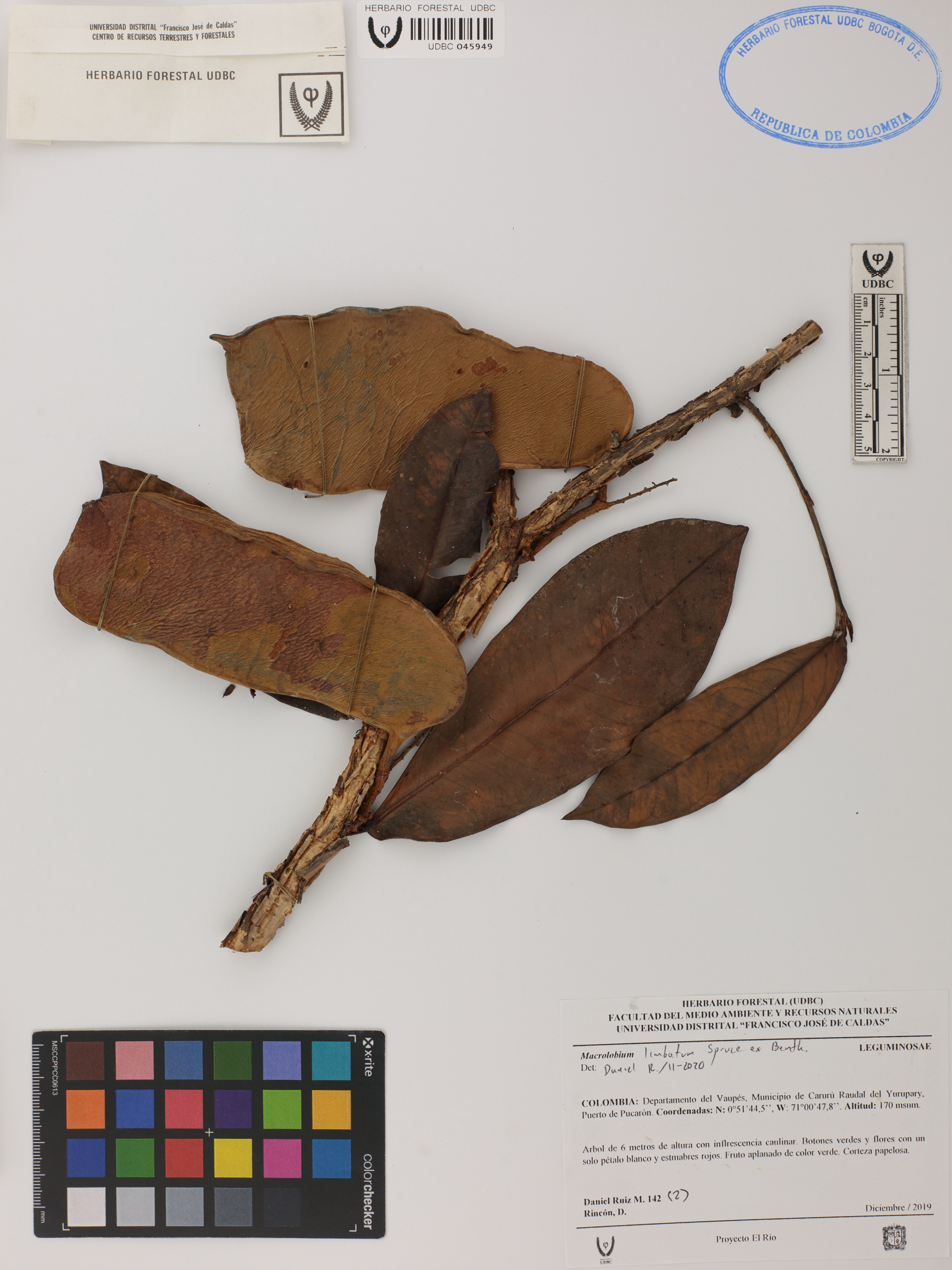 Fotografía del ejemplar Ruiz, D. 142, determinado como Macrolobium limbatum en el año 2020