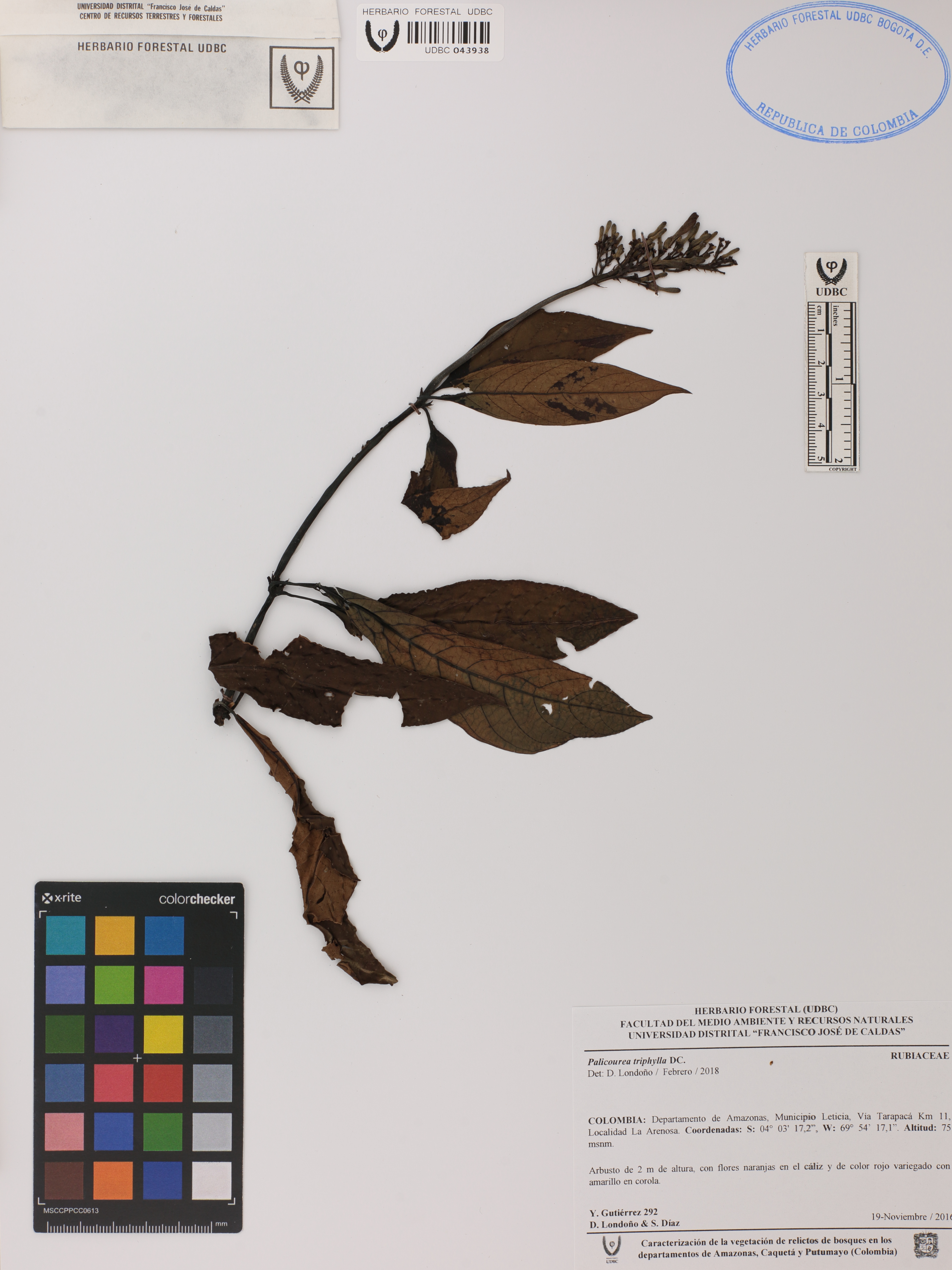 Fotografía del ejemplar Gutiérrez, Y. 292, determinado como Palicourea triphylla en el año 2018
