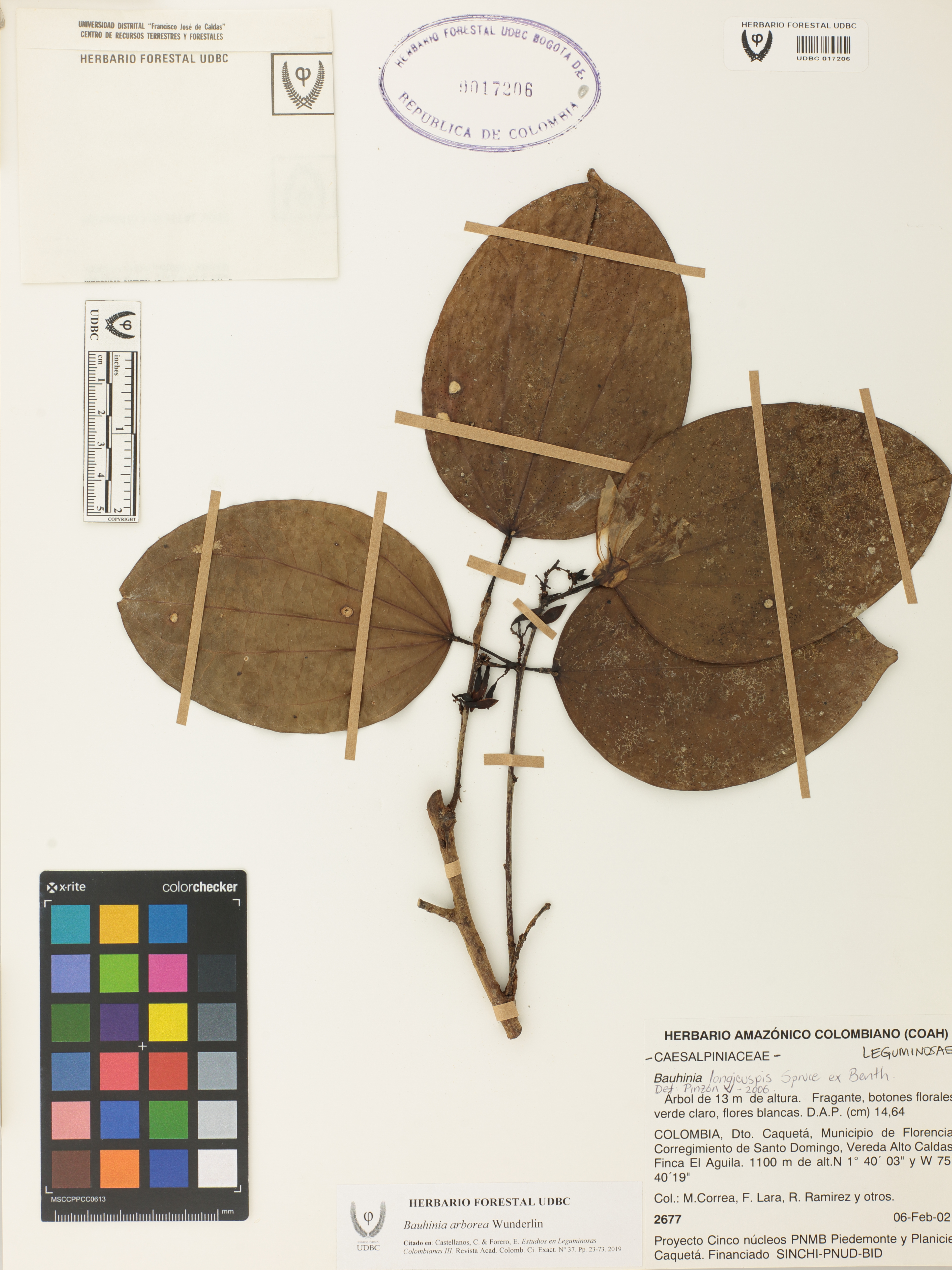 Fotografía del ejemplar Correa, M. 2677, determinado como Bauhinia arborea