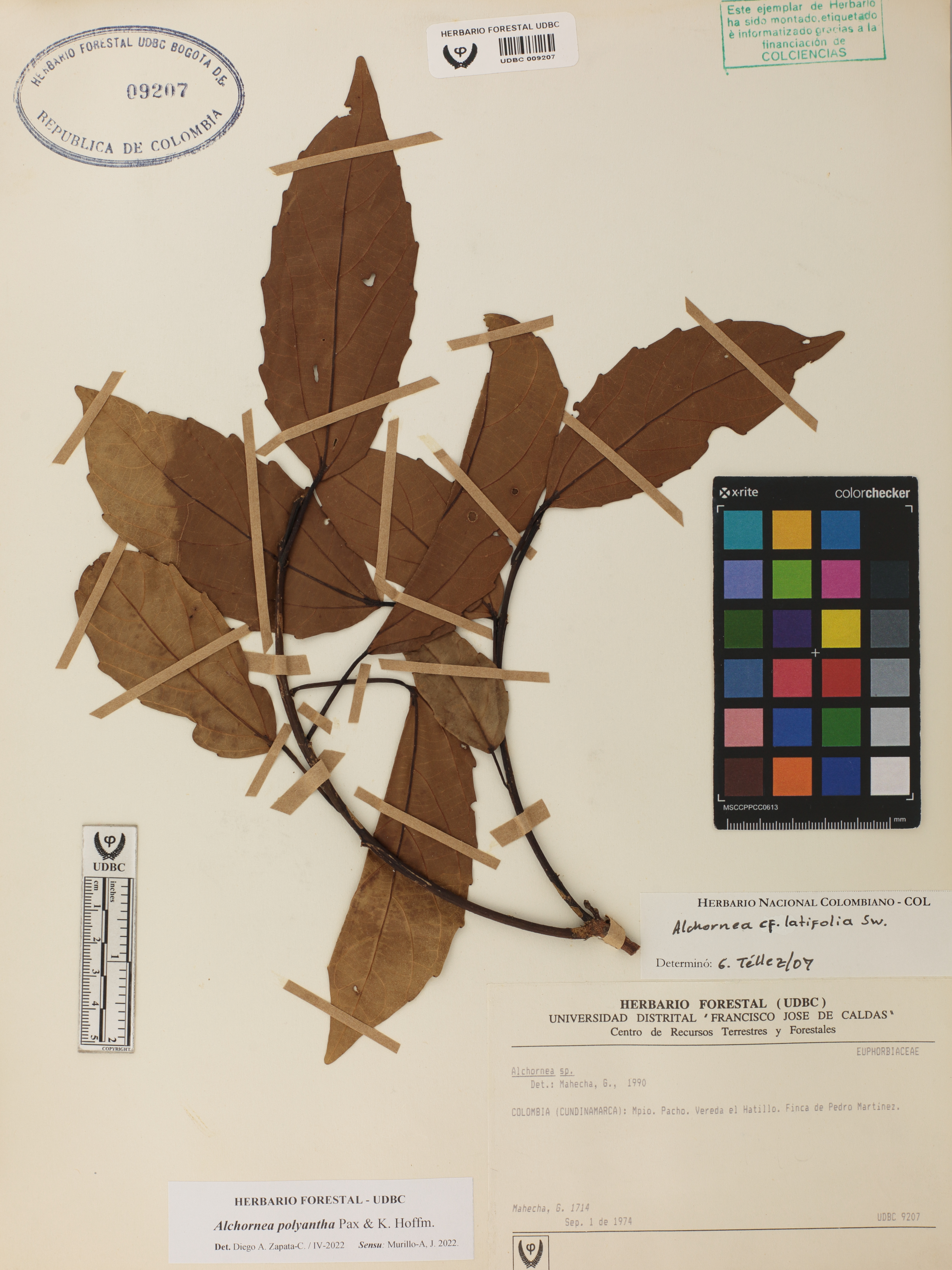 | dc.description | Fotografía del ejemplar Mahecha, G. 1714, determinado como Alchornea polyantha en el año 2022 | |