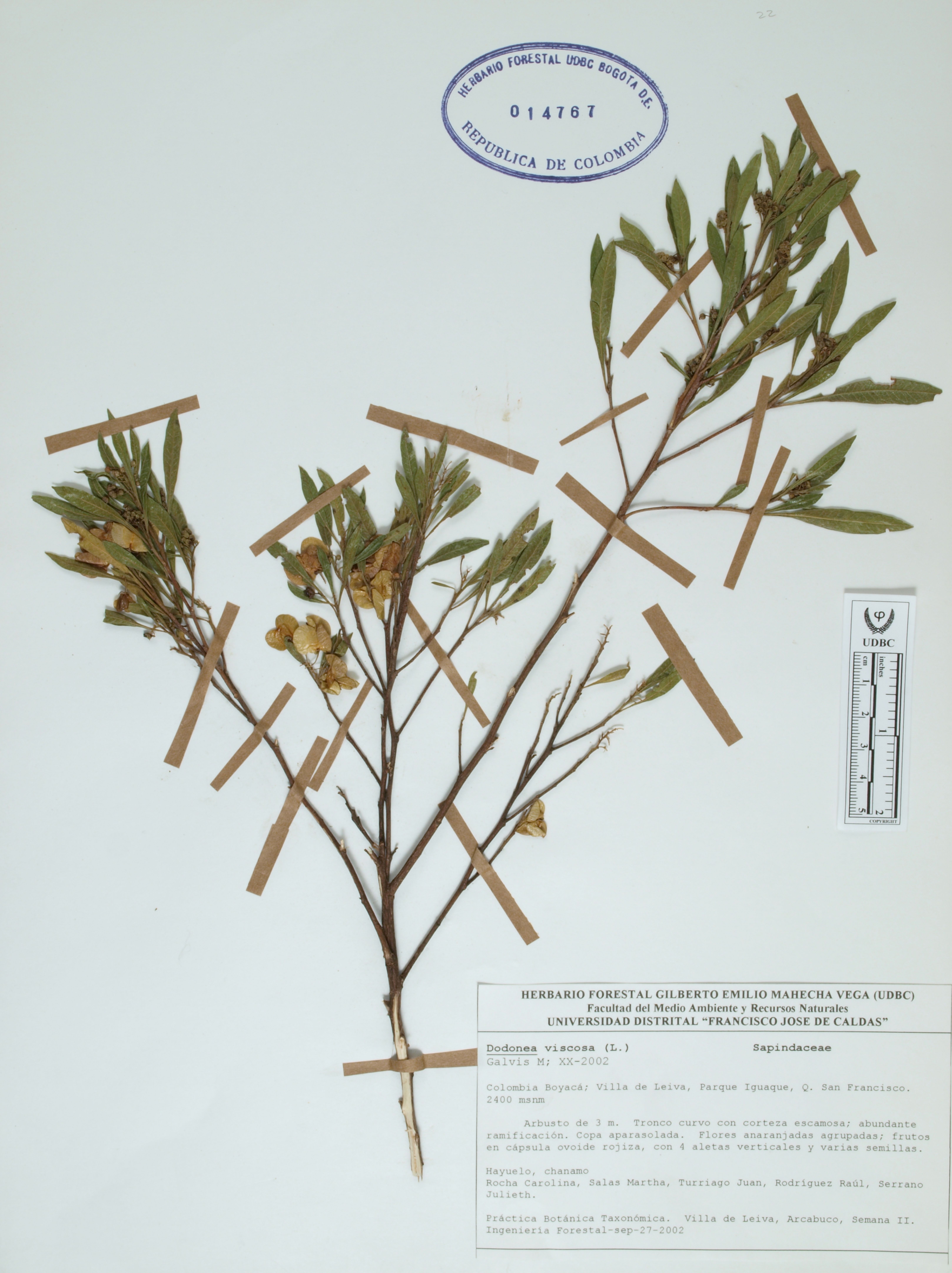 Fotografía del ejemplar Rocha, C., determinado como Dodonaea viscosa en el año 2002