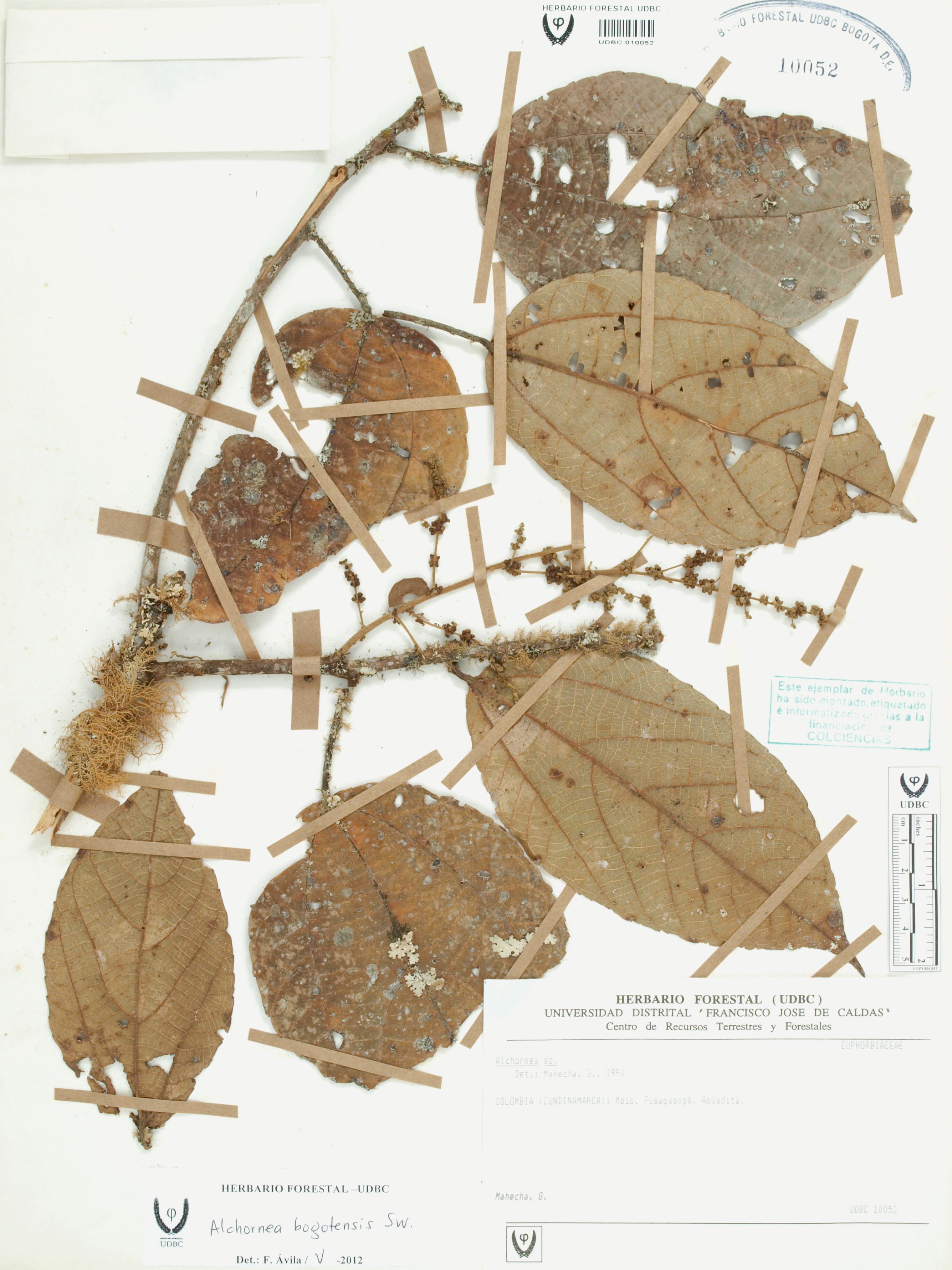 Fotografía del ejemplar Mahecha, G., determinado como Alchornea bogotensis en el año 2012