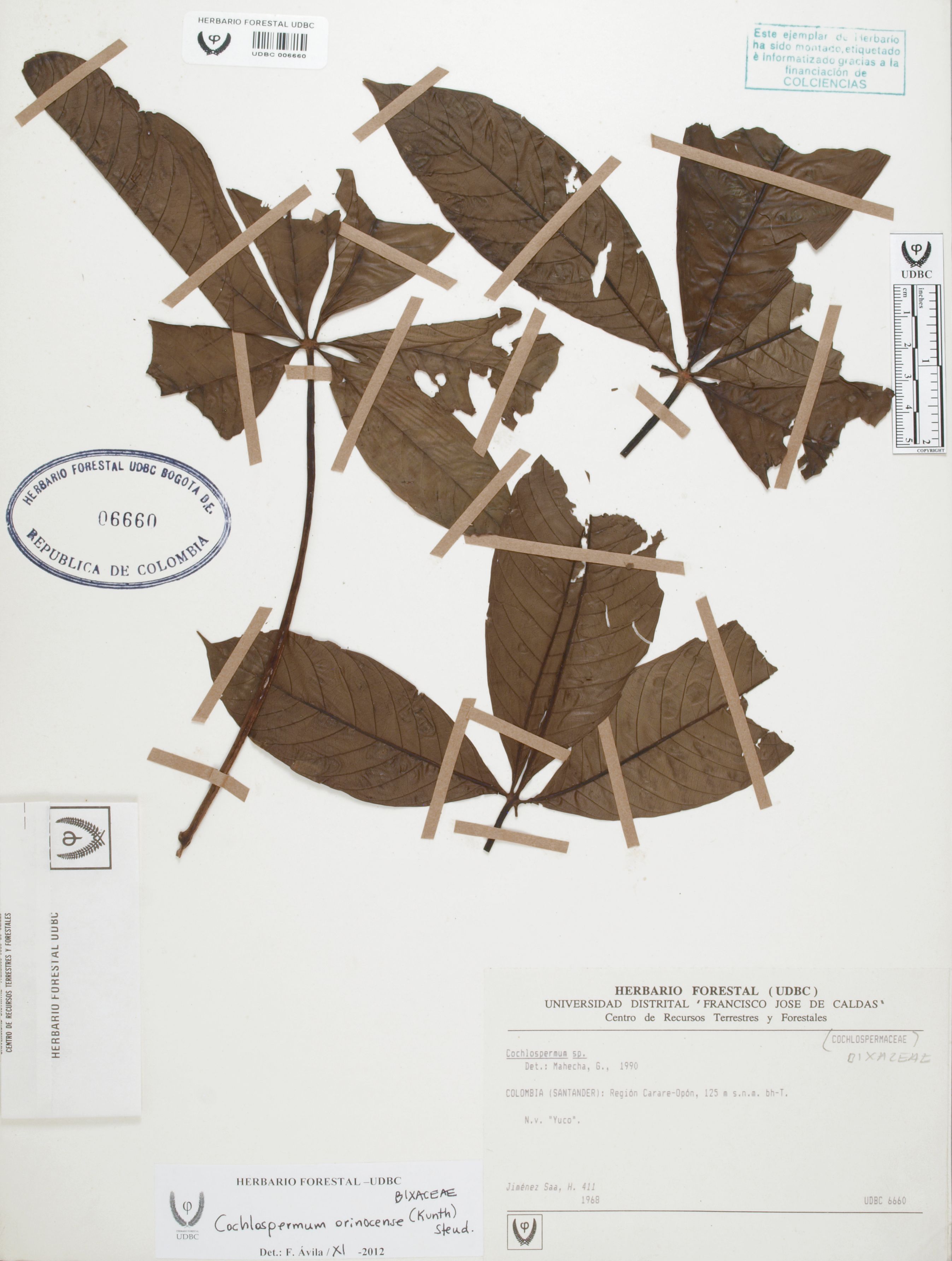 Fotografía del ejemplar Jiménez-Saa, H. 411, determinado como Cochlospermum orinocense en el año 2012