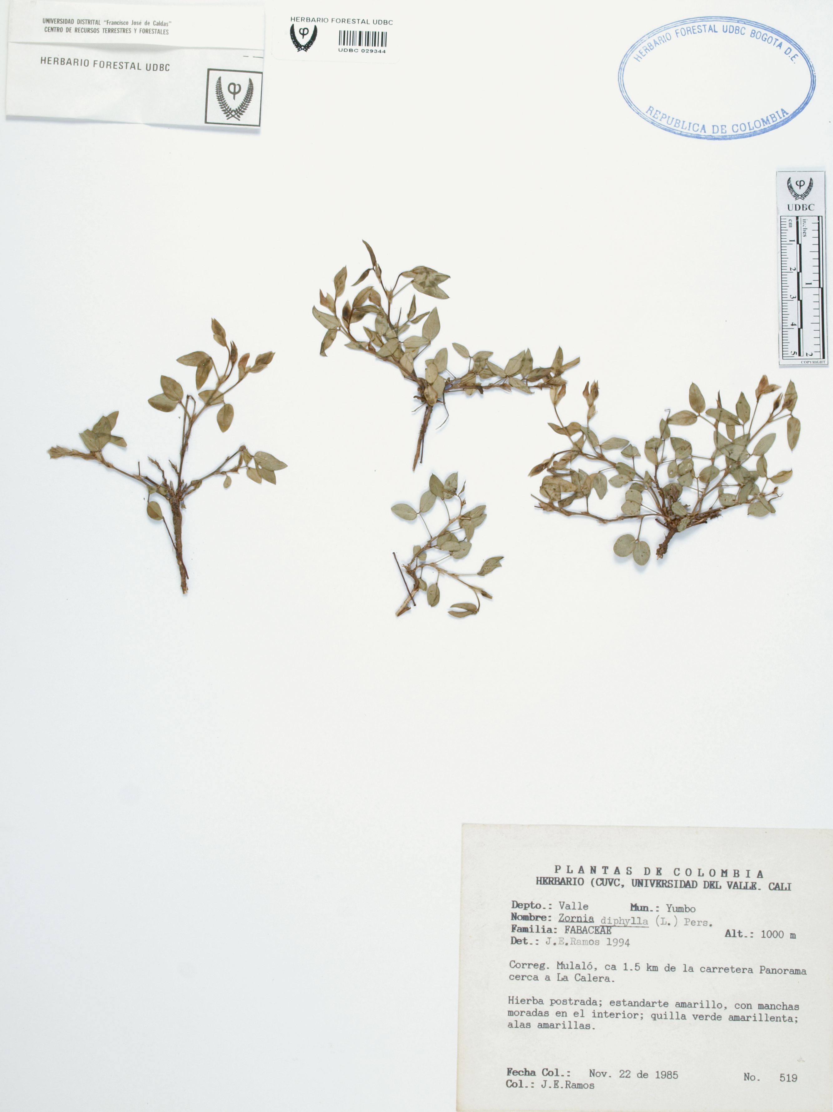 Fotografía del ejemplar Ramos, J. 519, determinado como Zornia diphylla