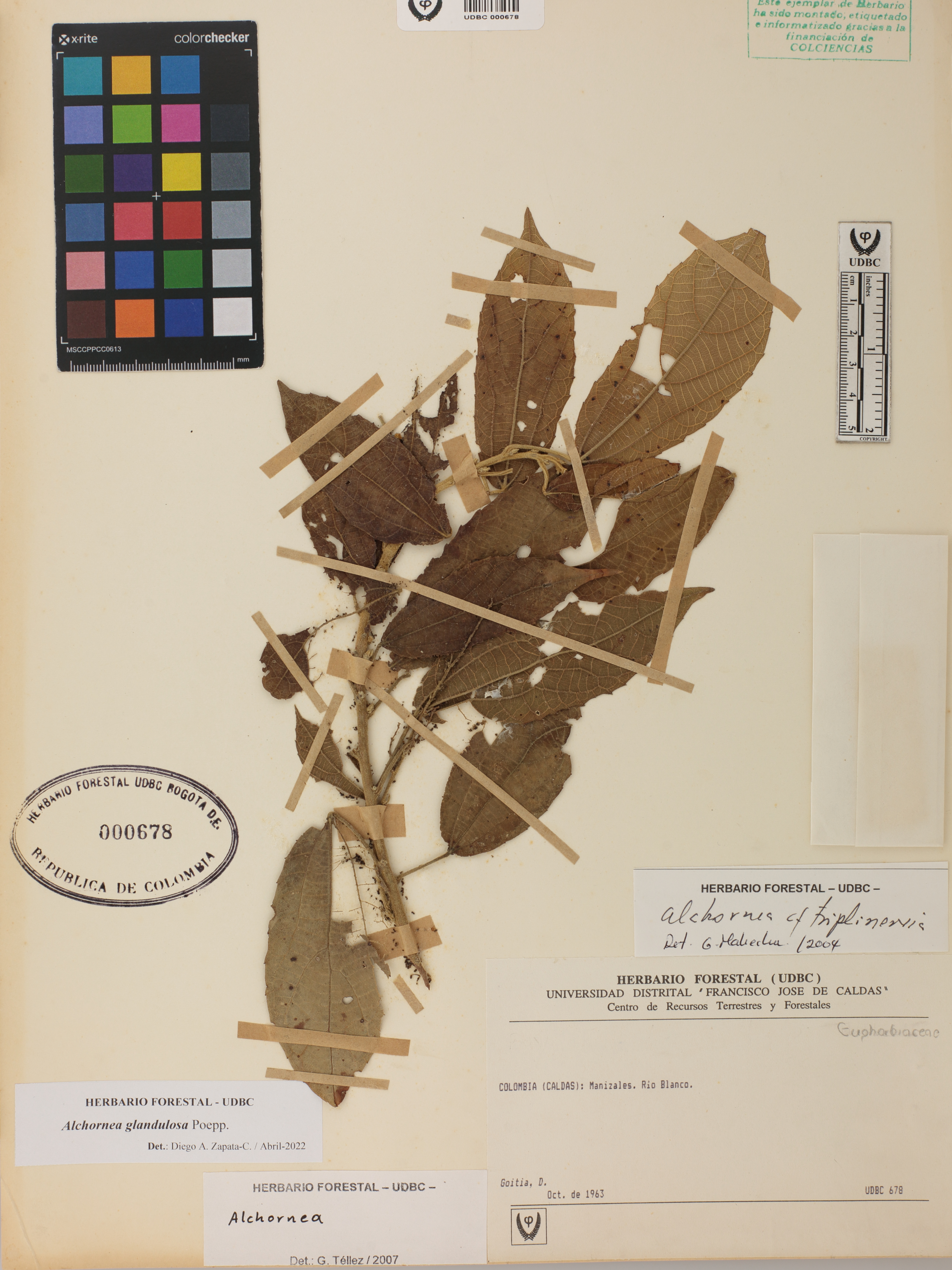 Fotografía del ejemplar Goitia, D., determinado como Alchornea glandulosa en el año 2022
