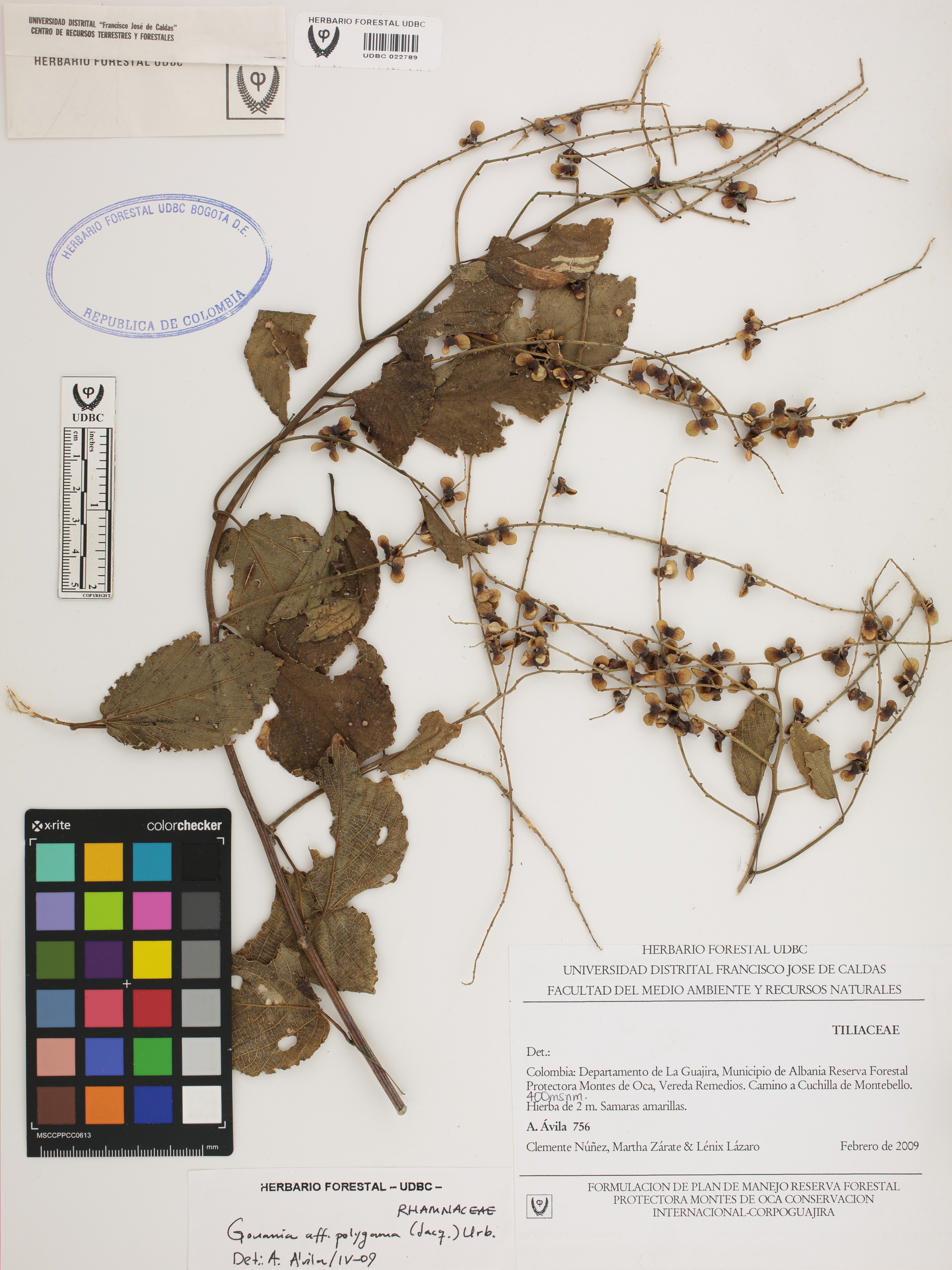 Fotografía del ejemplar Ávila, A. 756, determinado como Gouania polygama en el año 2009