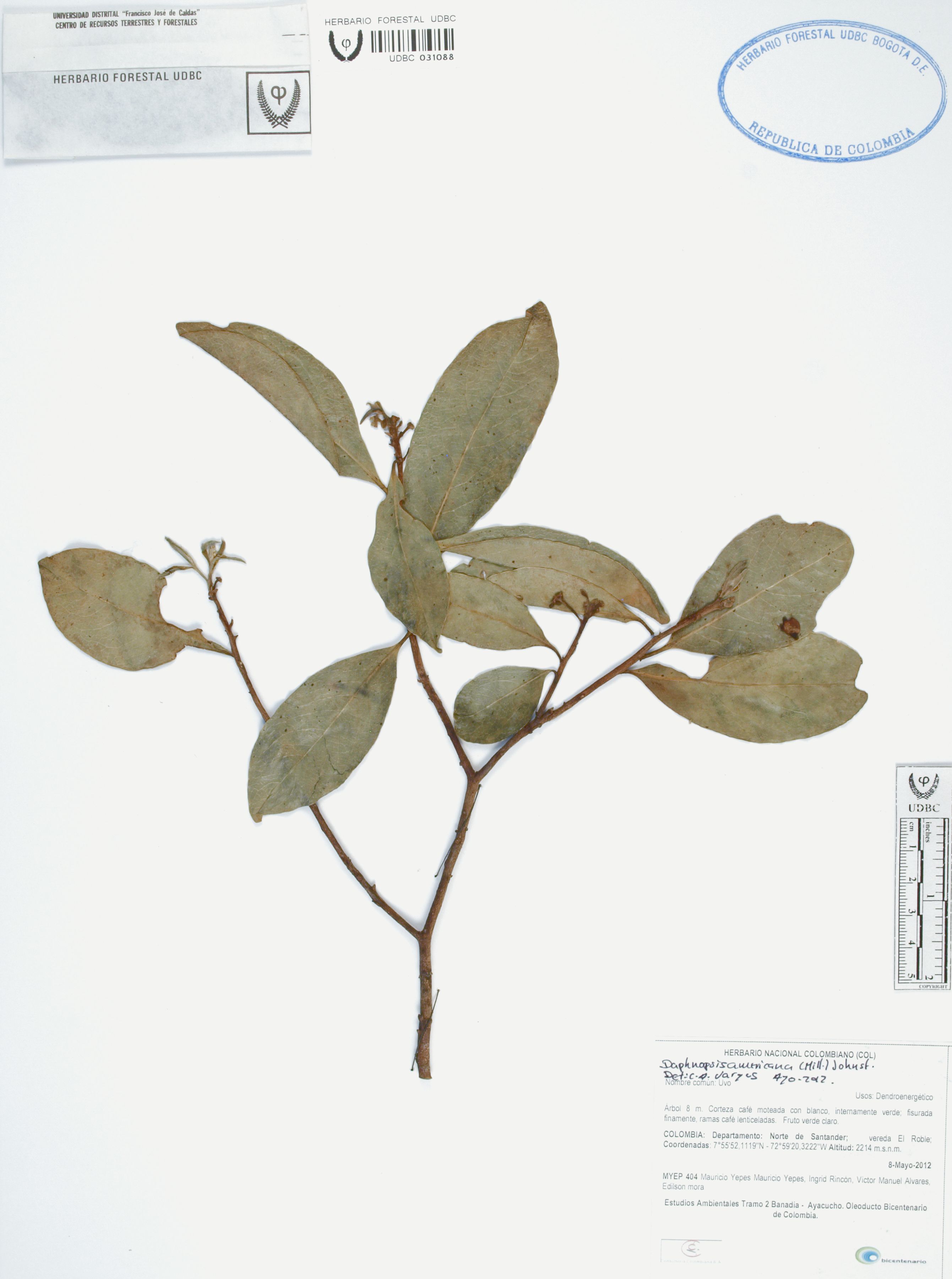 | dc.description | Fotografía del ejemplar Yepes, M. 404, determinado como Daphnopsis americana en el año 2012 | |