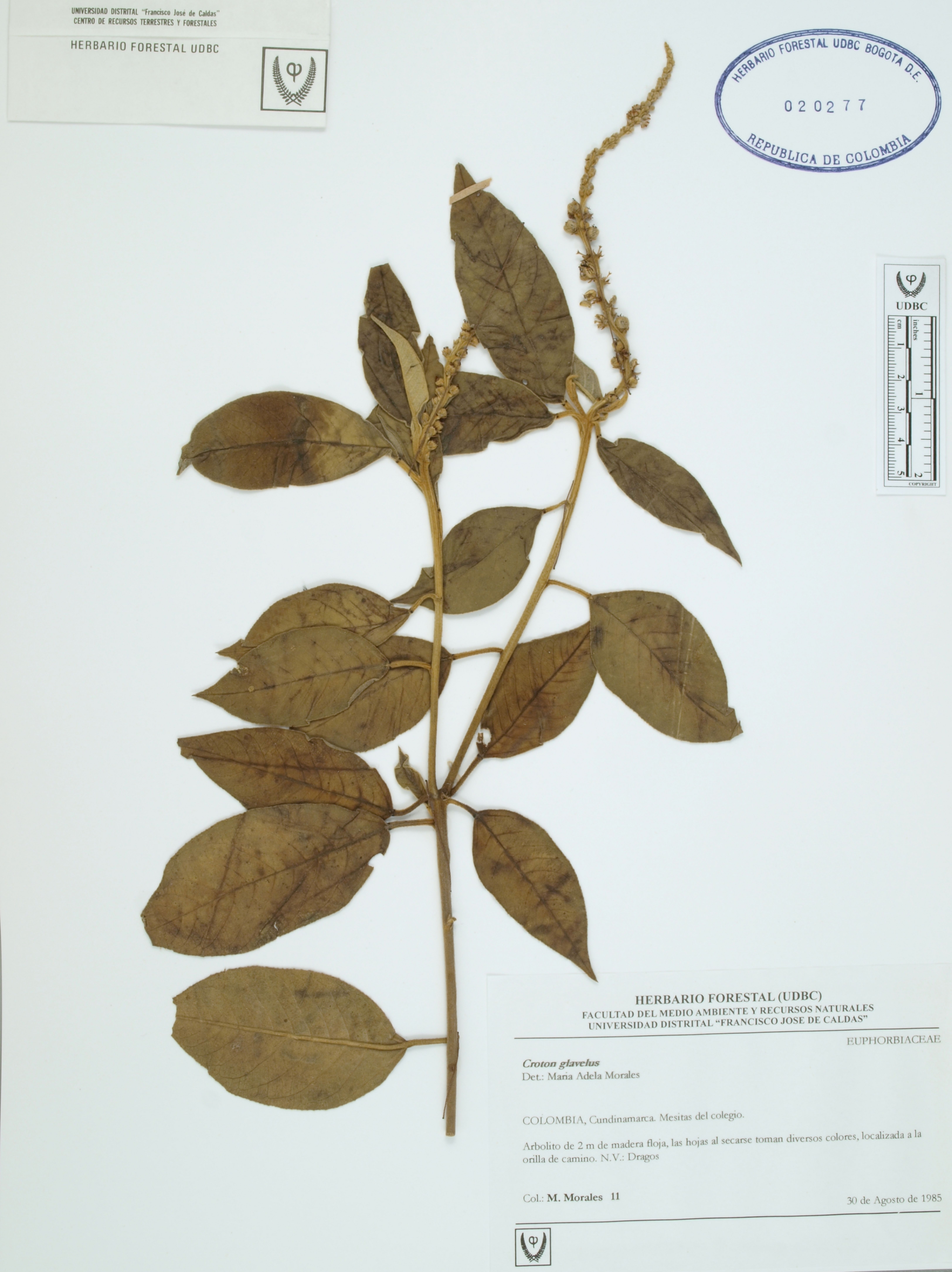 Fotografía del ejemplar Morales, M. 11, determinado como Croton glabellus en el año 2009