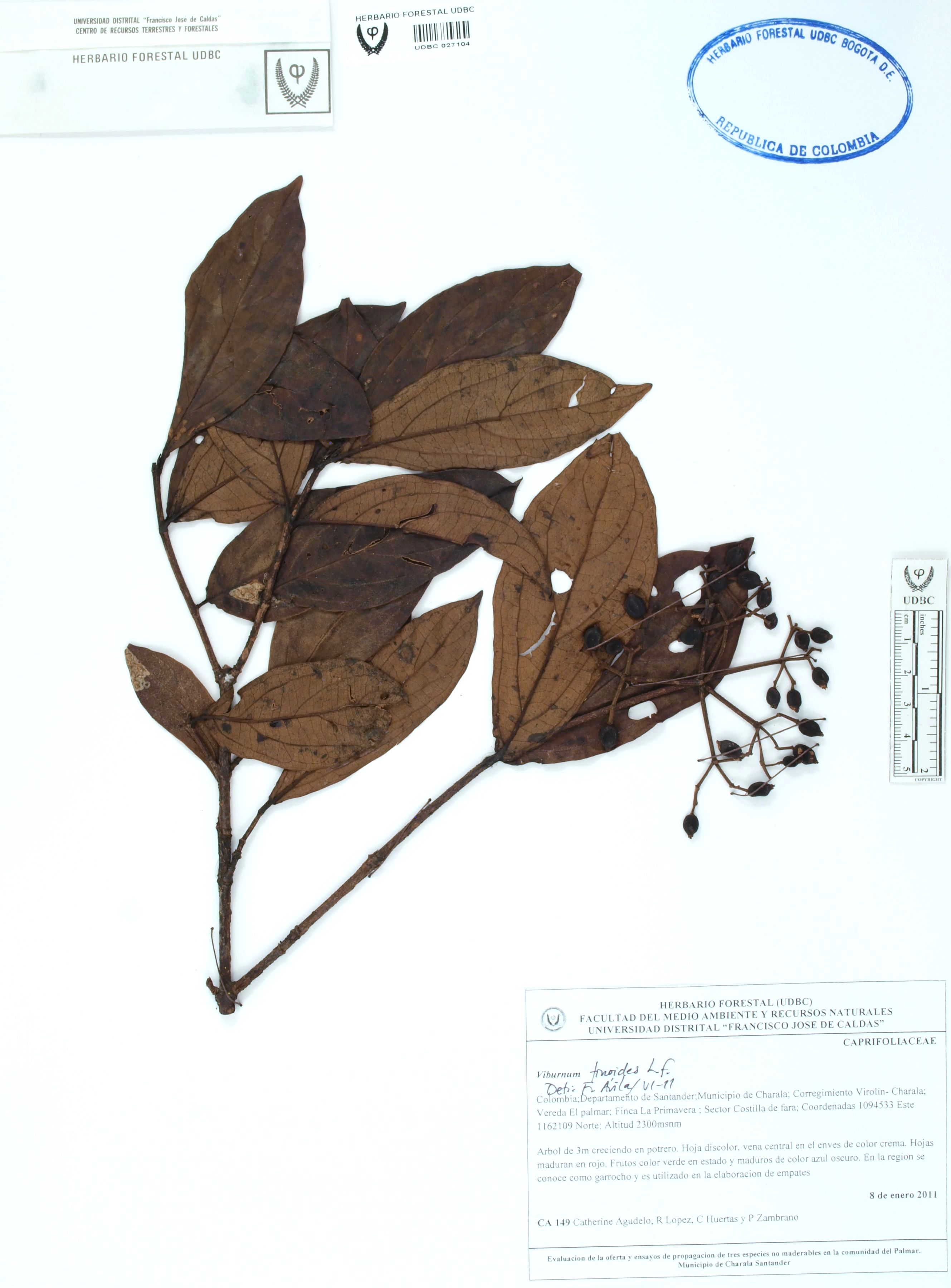 Fotografía del ejemplar Agudelo, C. 149, determinado como Viburnum tinoides en el año 2011