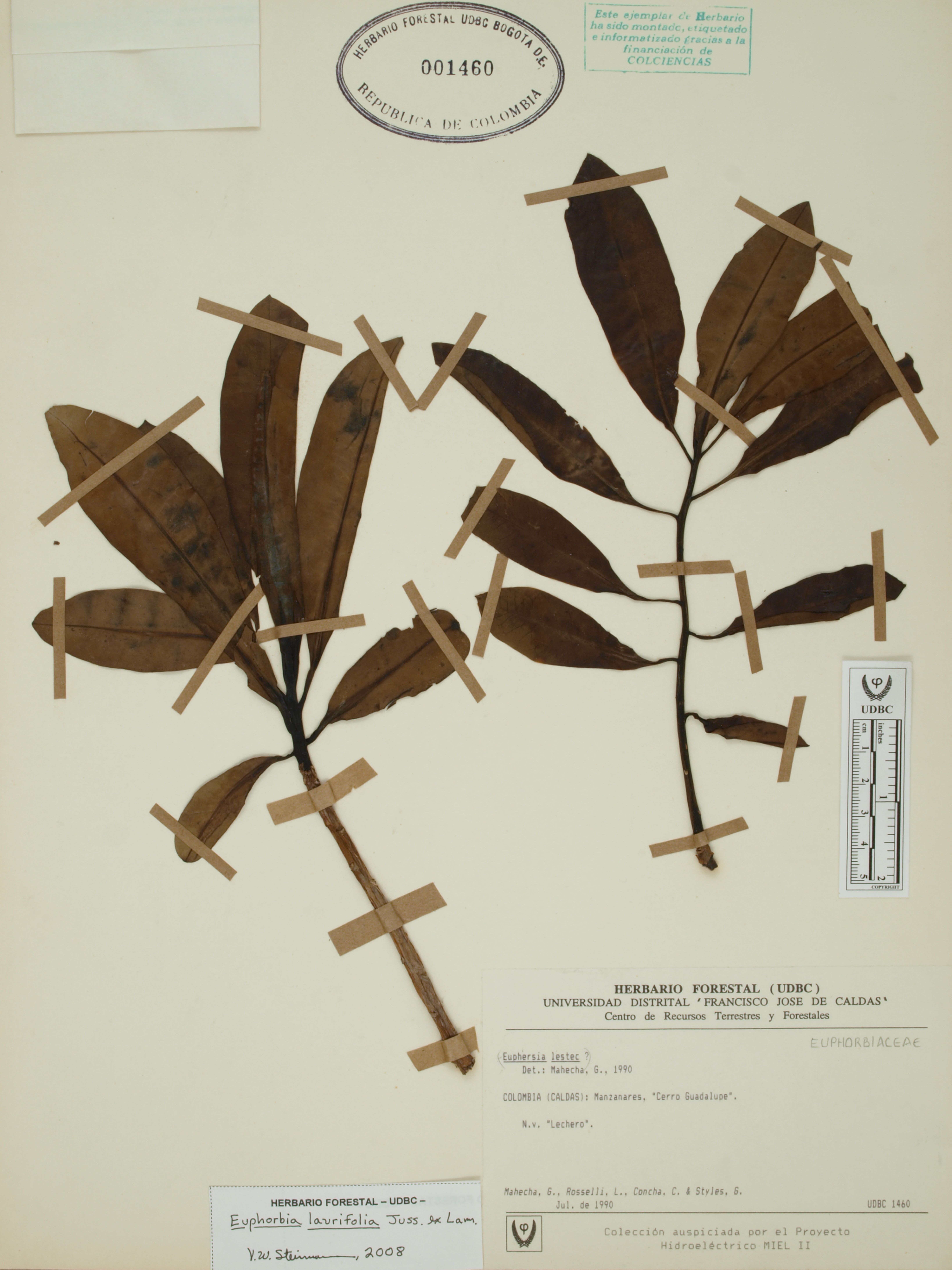 Fotografía del ejemplar Mahecha, G., determinado como Euphorbia laurifolia en el año 2008