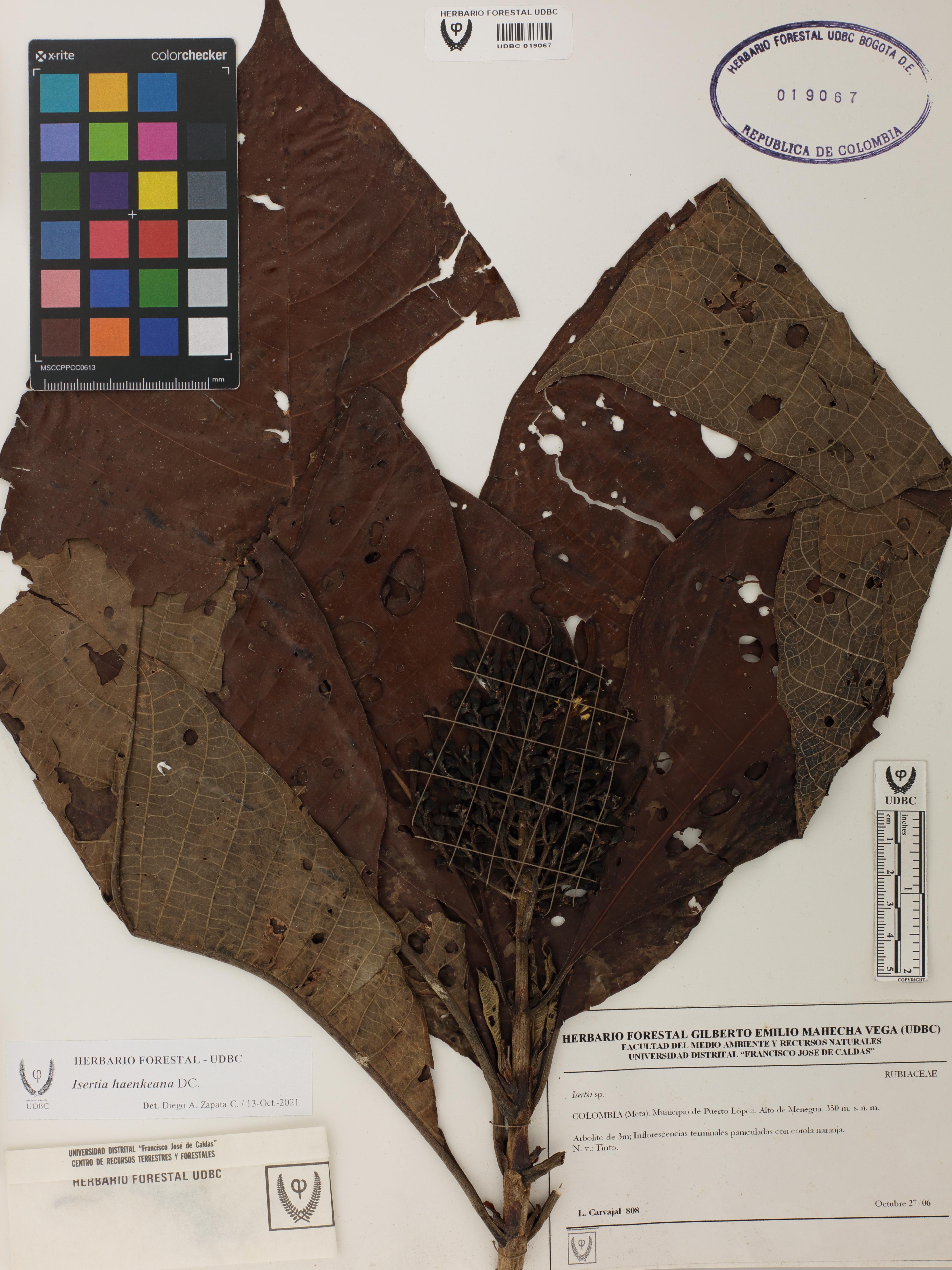 Fotografía del ejemplar Carvajal, L. 808, determinado como Isertia haenkeana en el año 2021