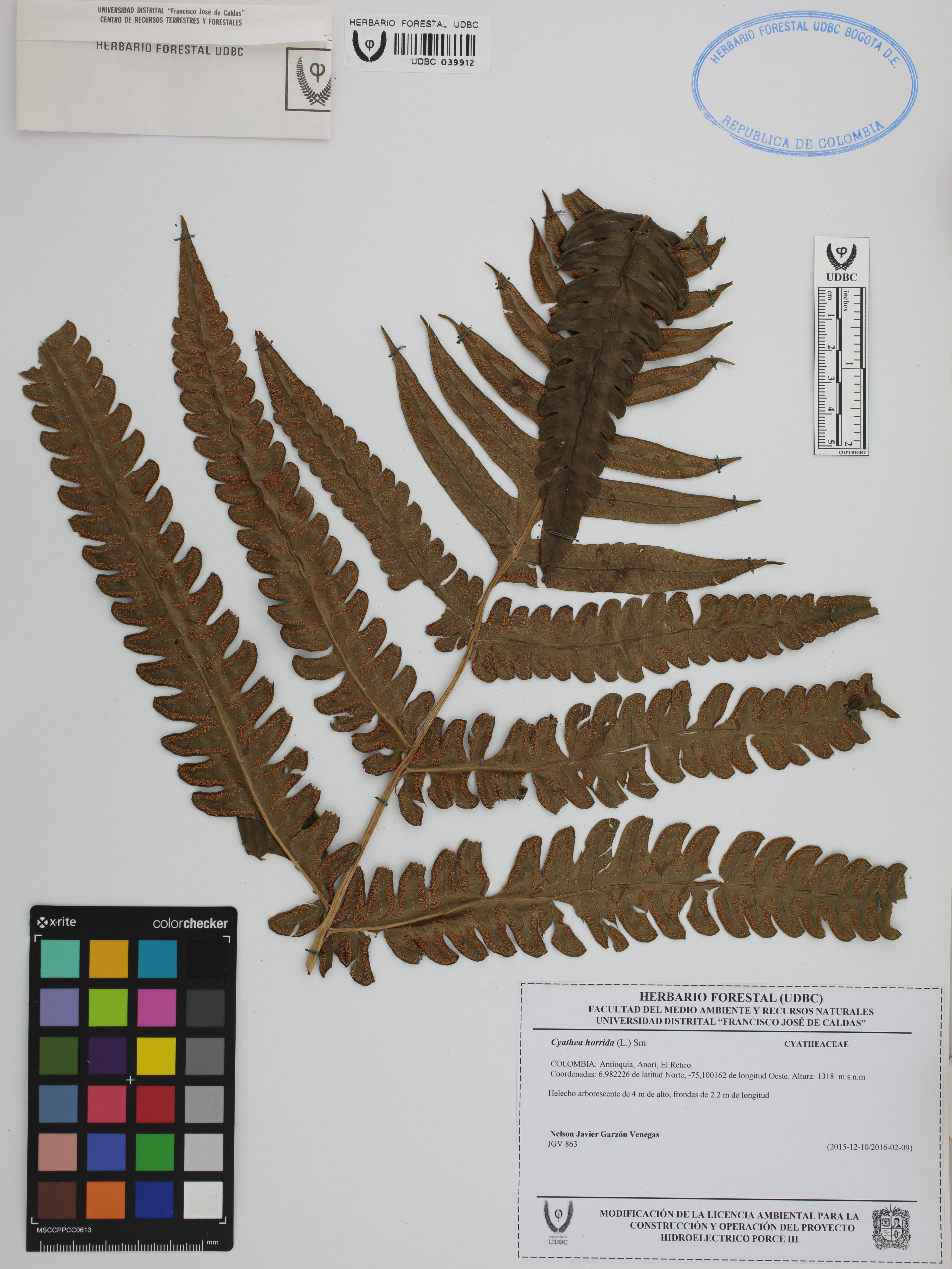 | dc.description | Fotografía del ejemplar Garzón, N., determinado como Cyathea horrida | |