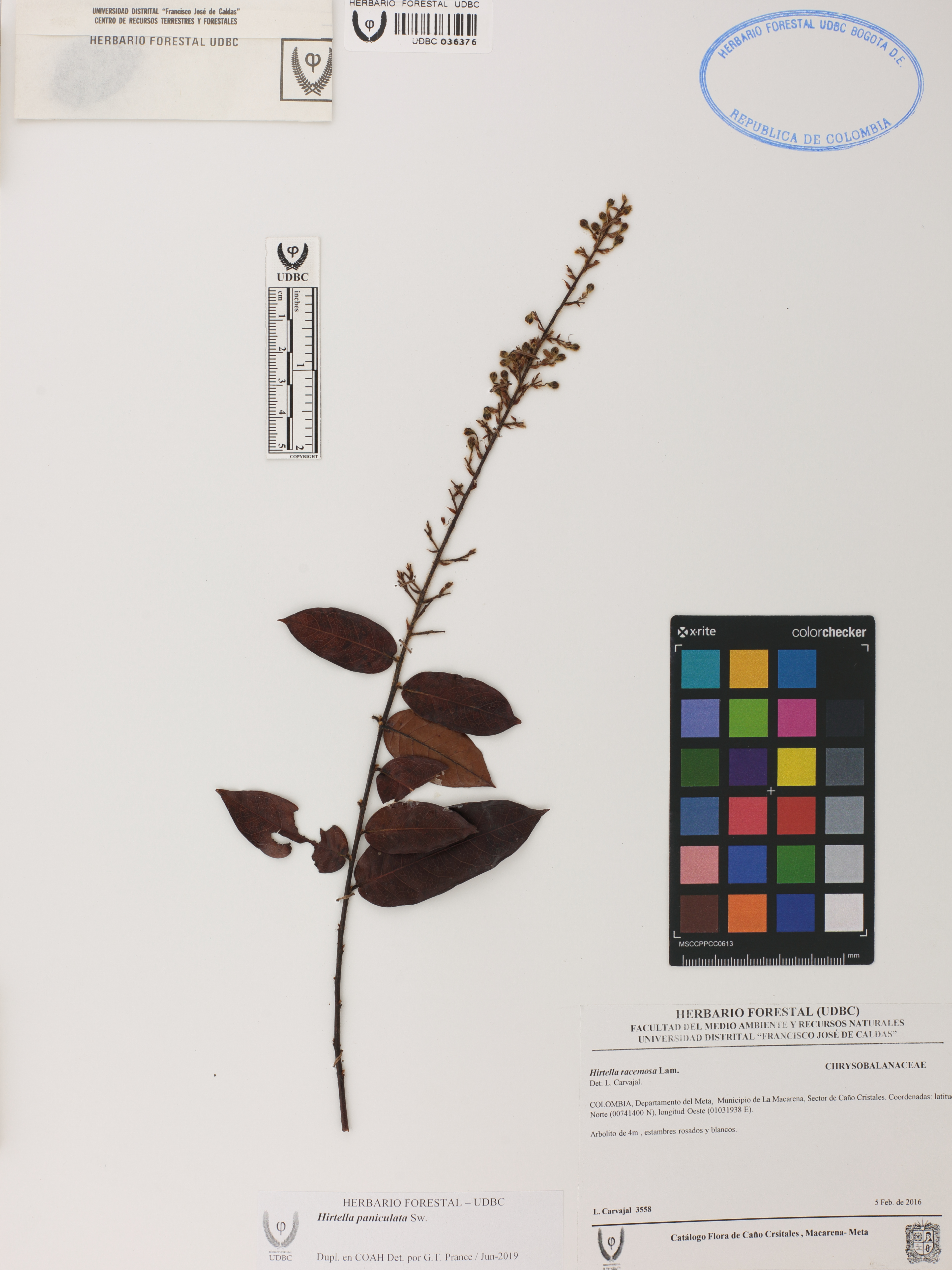 Fotografía del ejemplar Carvajal, L. 3558, determinado como Hirtella paniculata en el año 2019