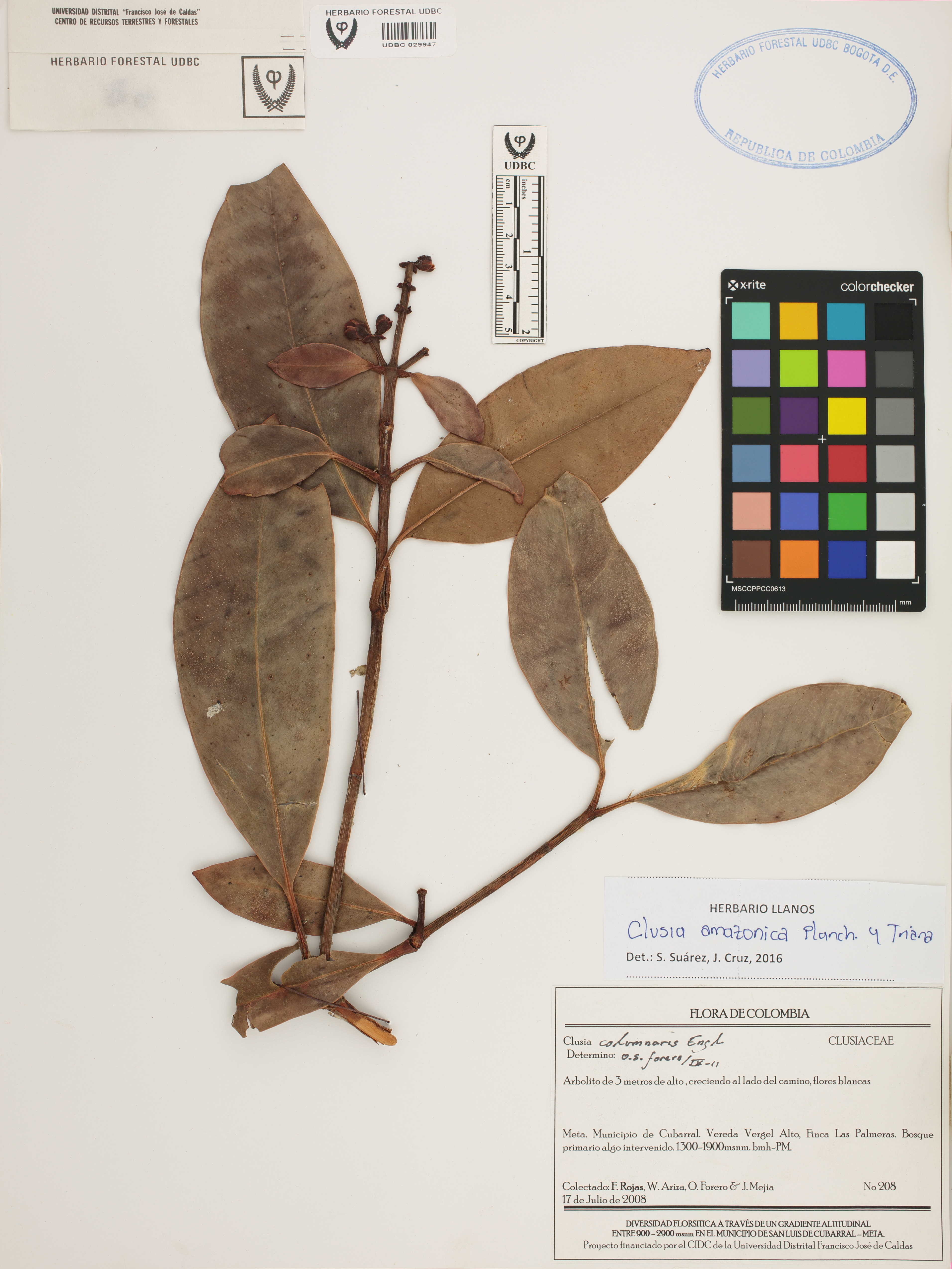 Fotografía del ejemplar Rojas, F. 208, determinado como Clusia amazonica en el año 2011