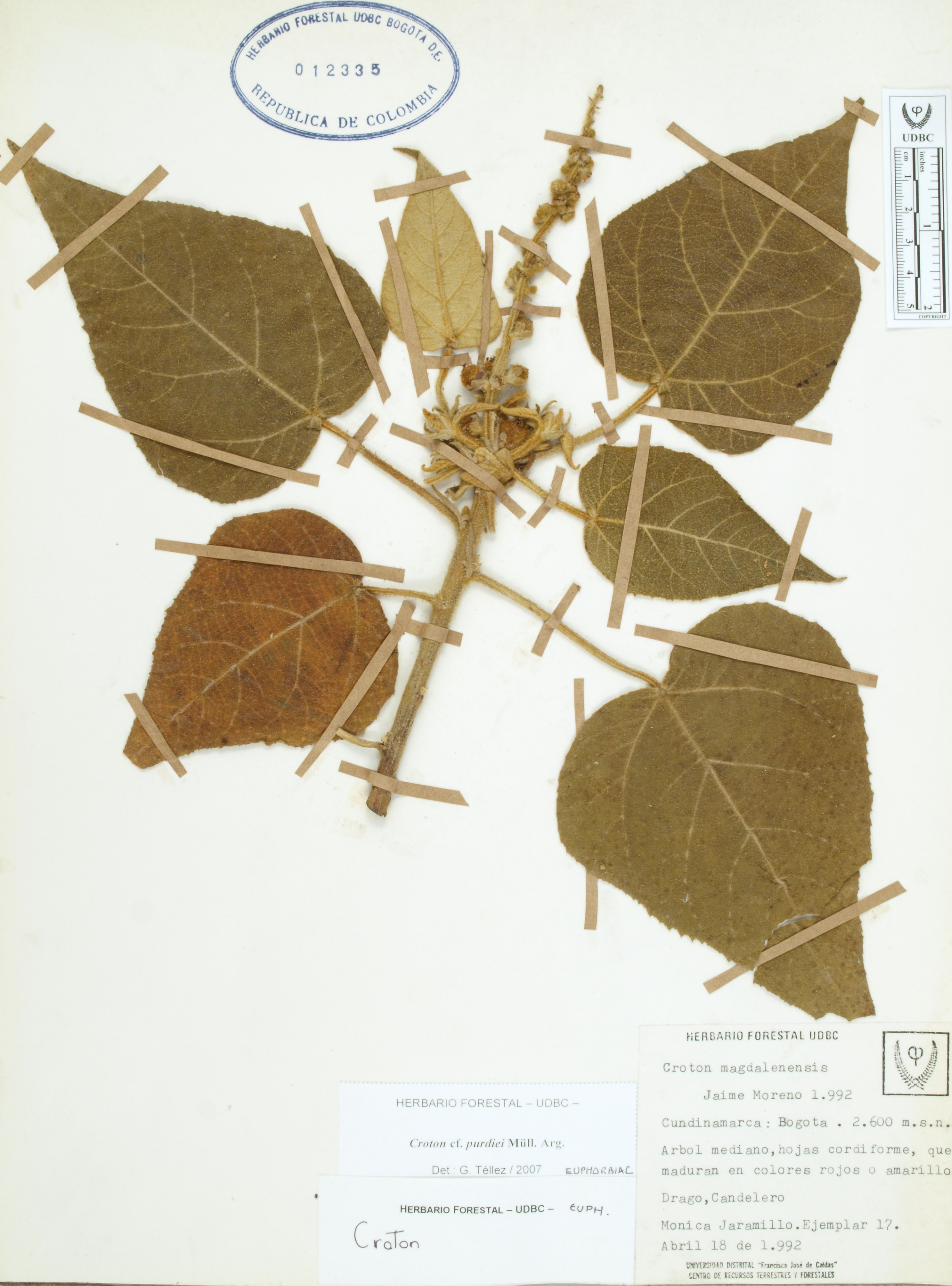 | dc.description | Fotografía del ejemplar Jaramillo, M. 17, determinado como Croton purdiei en el año 2007 | |