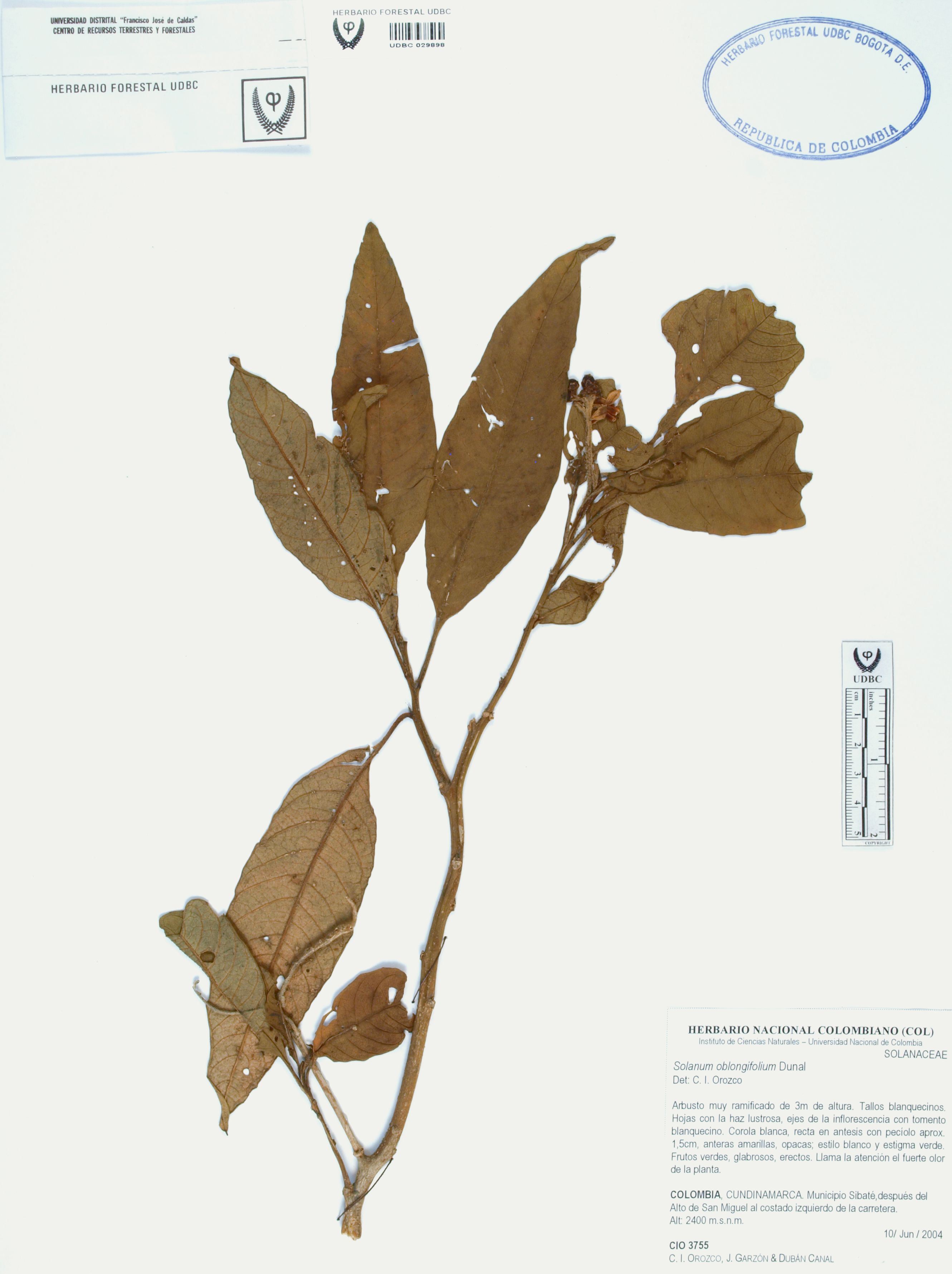 | dc.description | Fotografía del ejemplar Orozco, C. 3755, determinado como Solanum oblongifolium | |