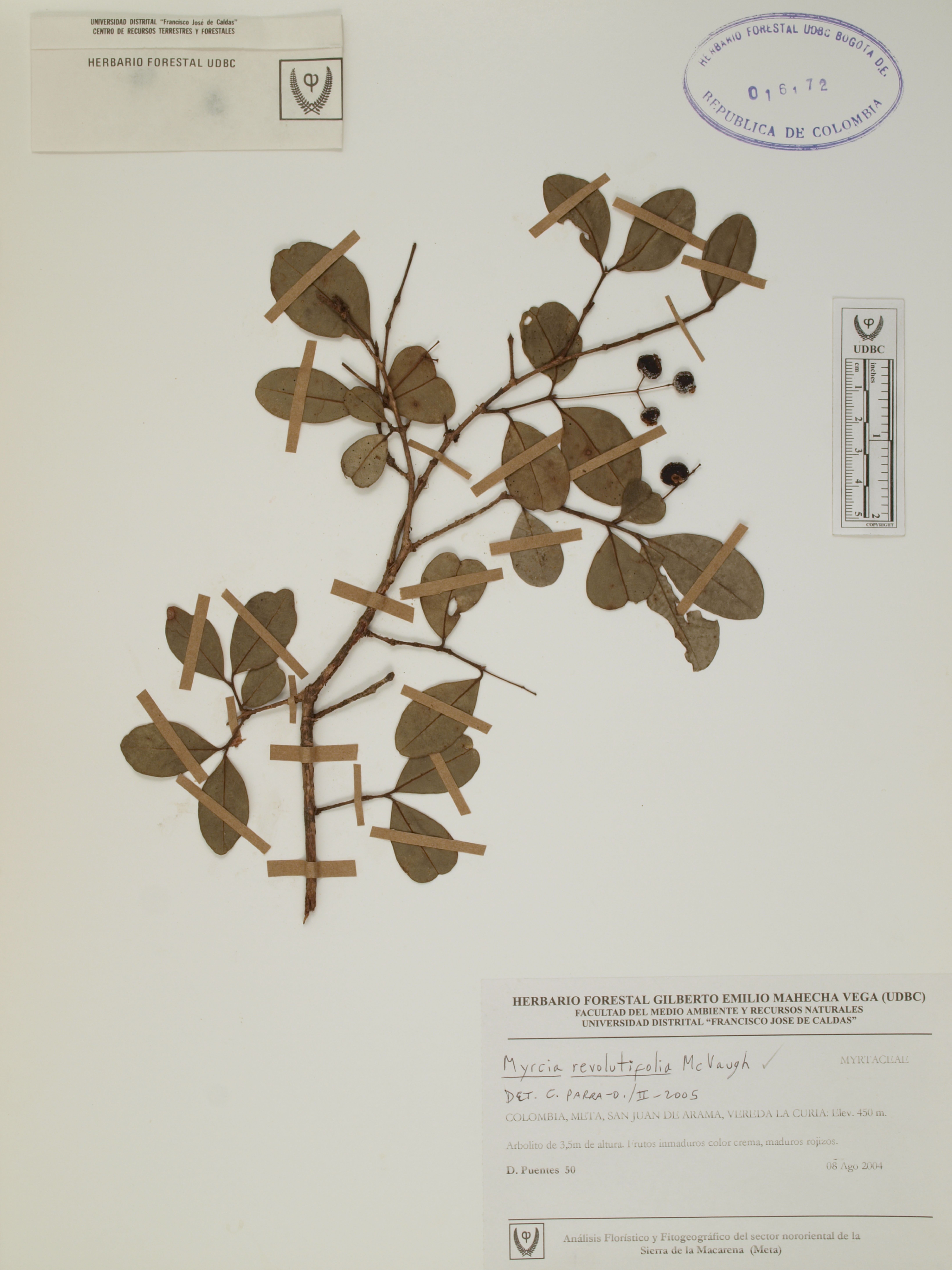 Fotografía del ejemplar Puentes, D. 50, determinado como Myrcia revolutifolia en el año 2005