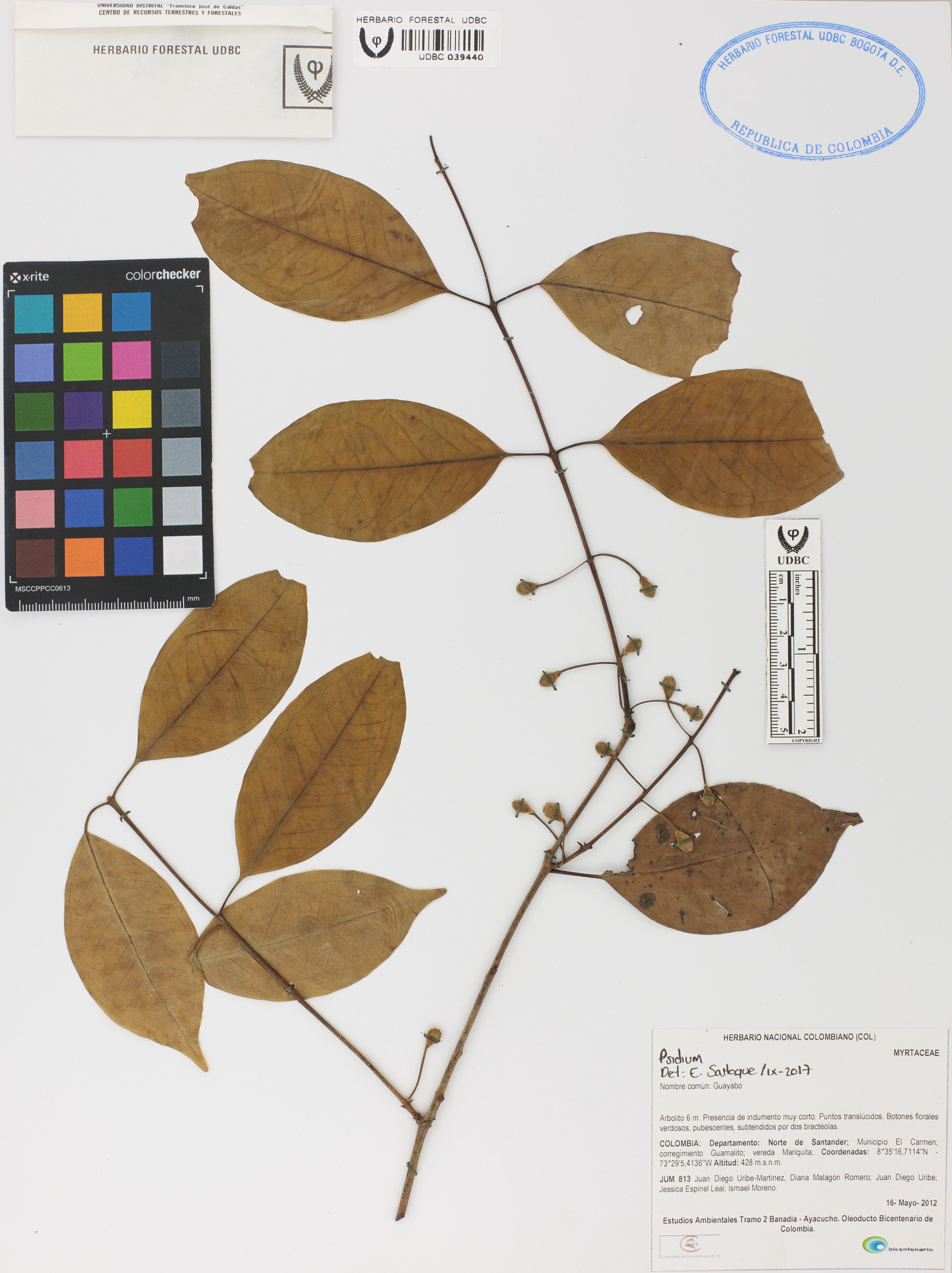 Fotografía del ejemplar Uribe-M., J. 813, determinado como Psidium sp. en el año 2017