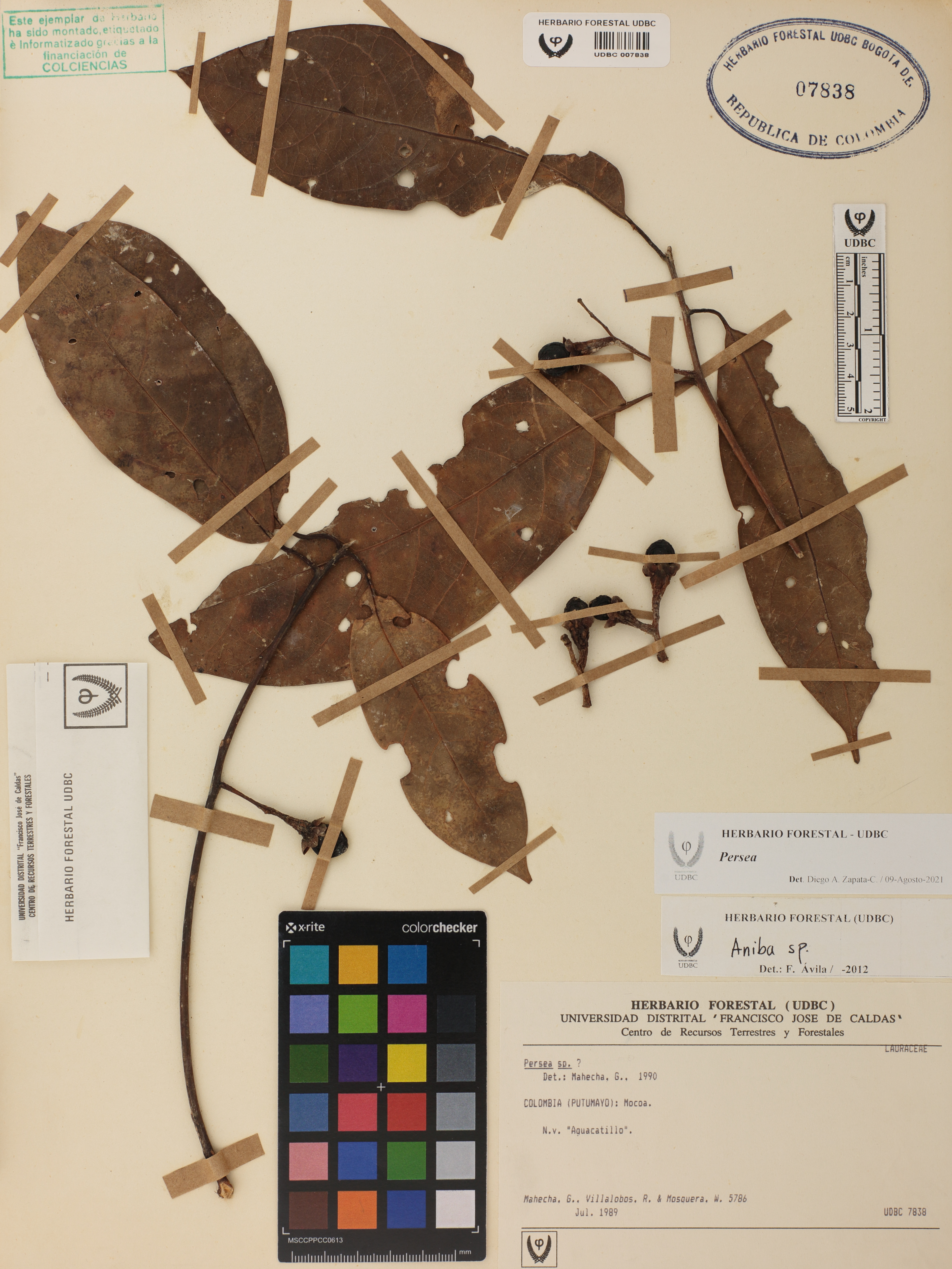 Fotografía del ejemplar Mahecha, G. 5786, determinado como Persea sp. en el año 2021