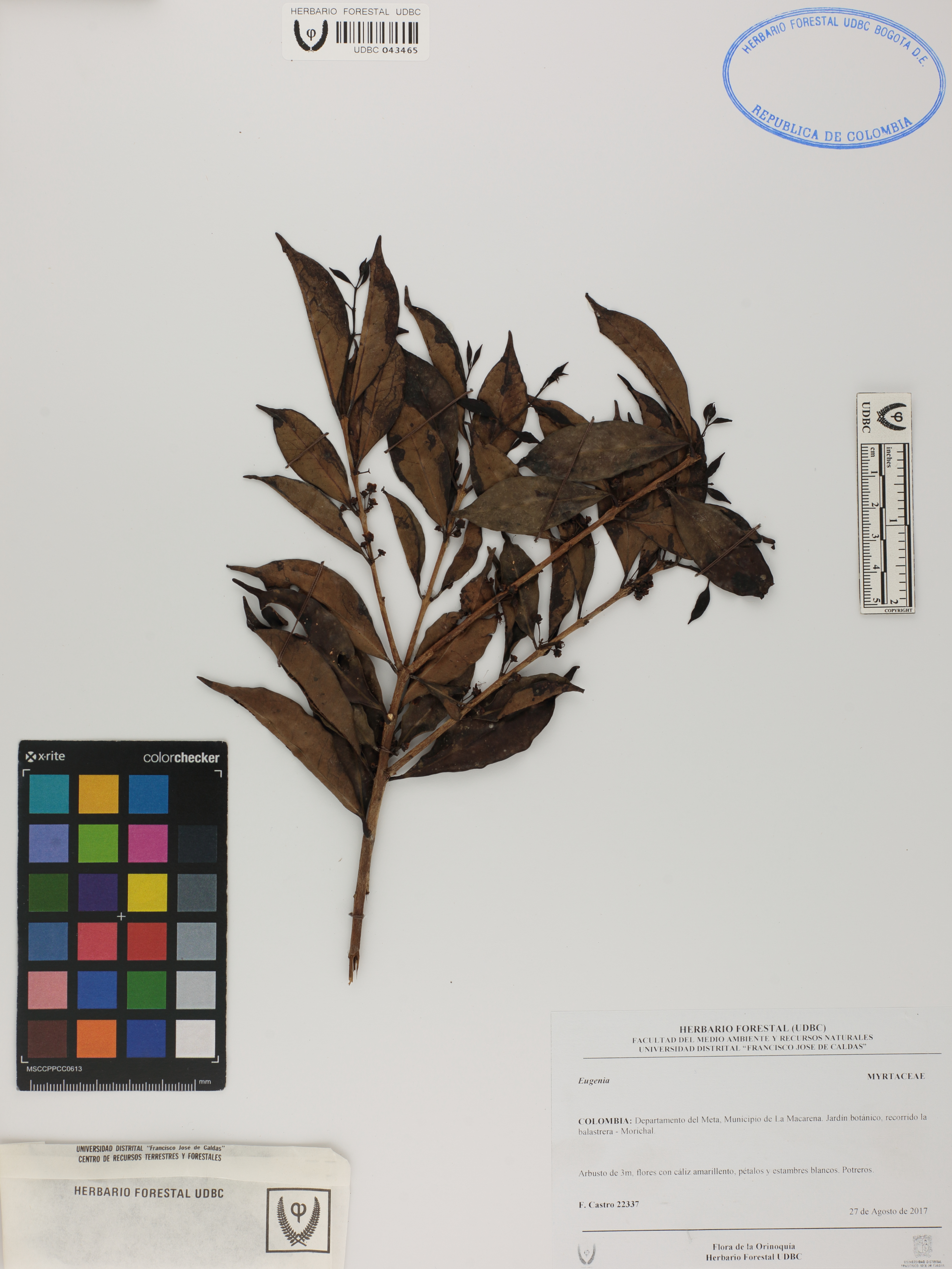 Fotografía del ejemplar Castro, F. 22337, determinado como Eugenia sp. en el año 2017