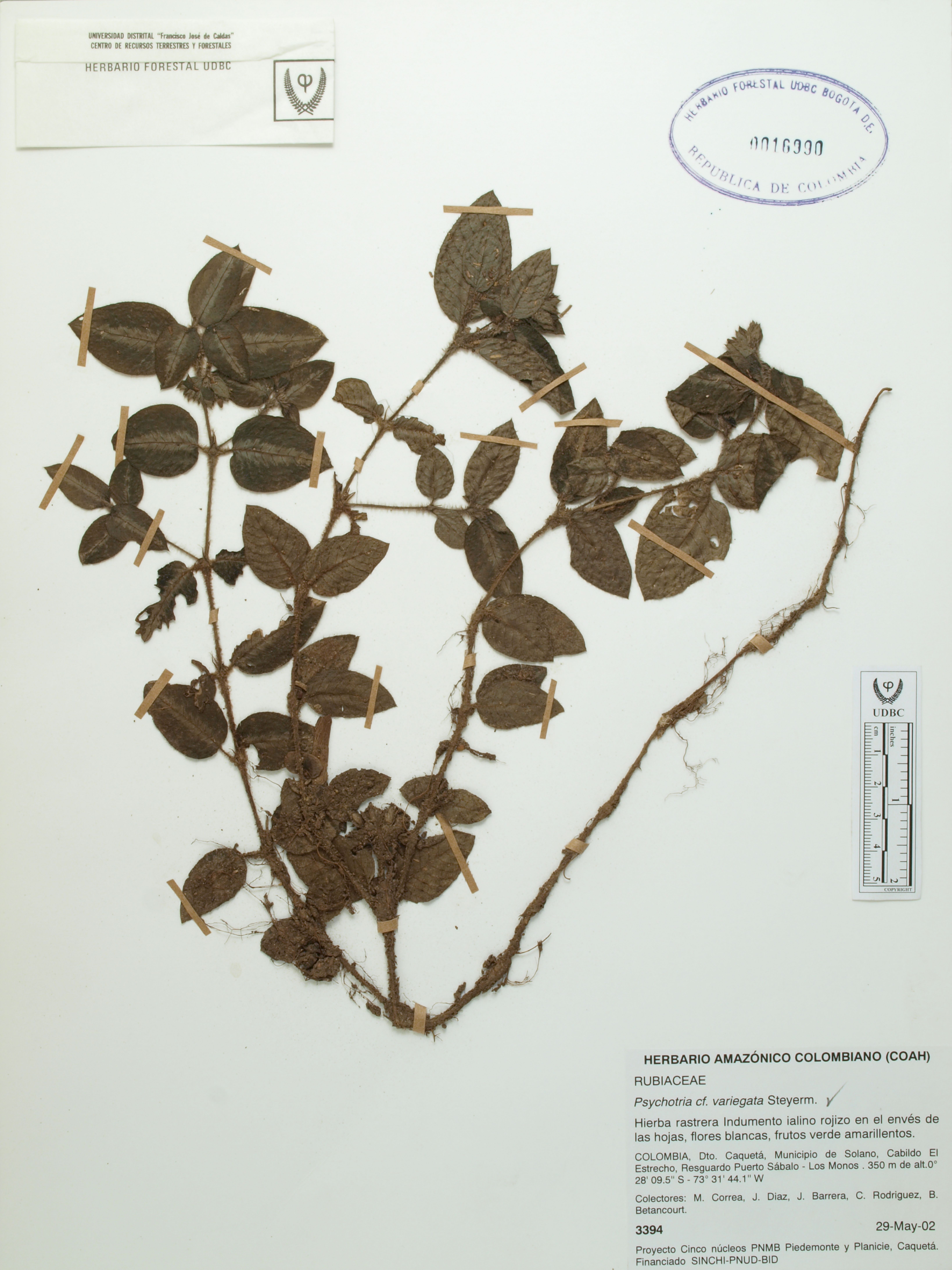 Fotografía del ejemplar Correa, M. 3394, determinado como Psychotria variegata
