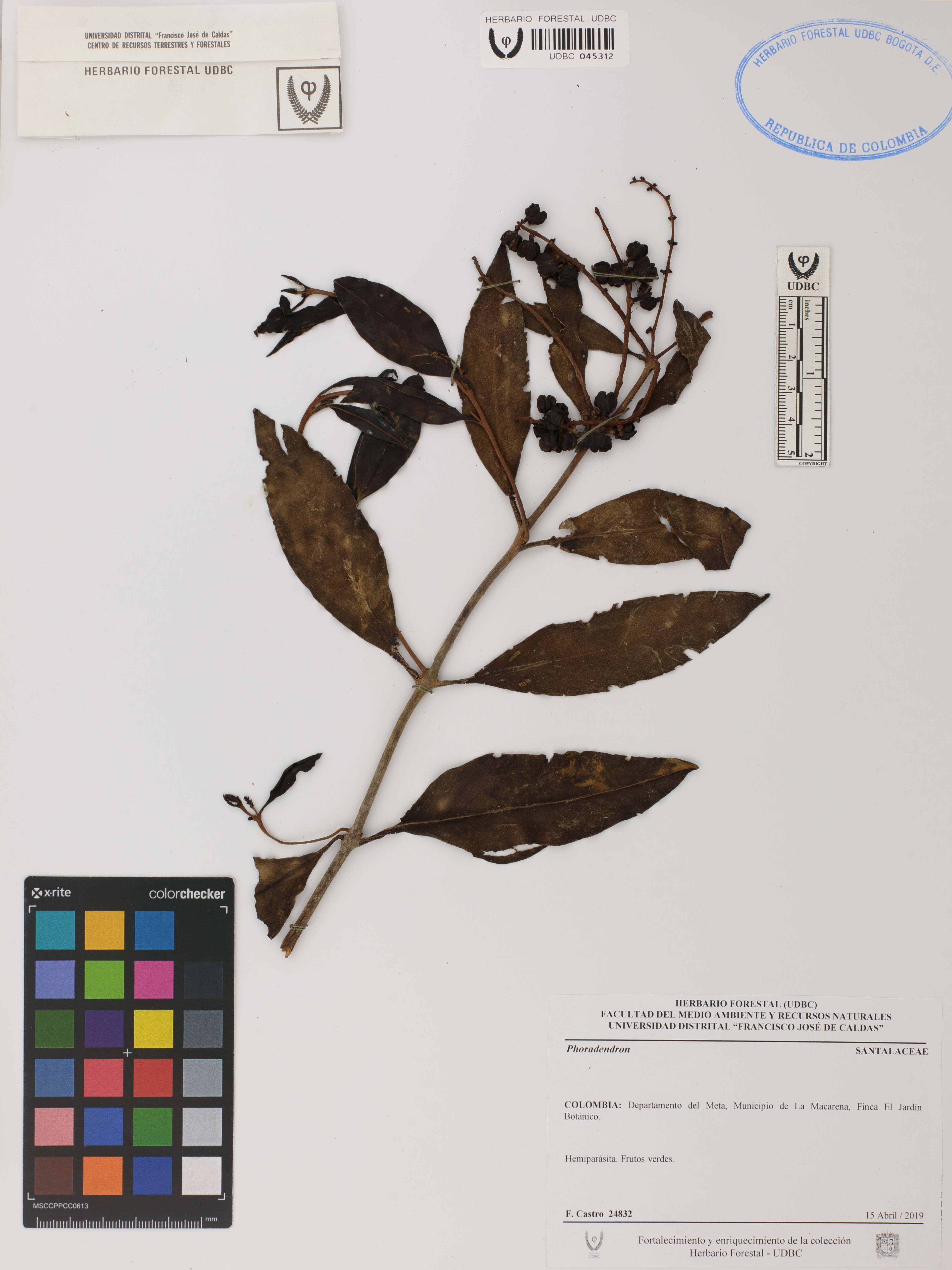 Fotografía del ejemplar Castro, F. 24832, determinado como Phoradendron sp.