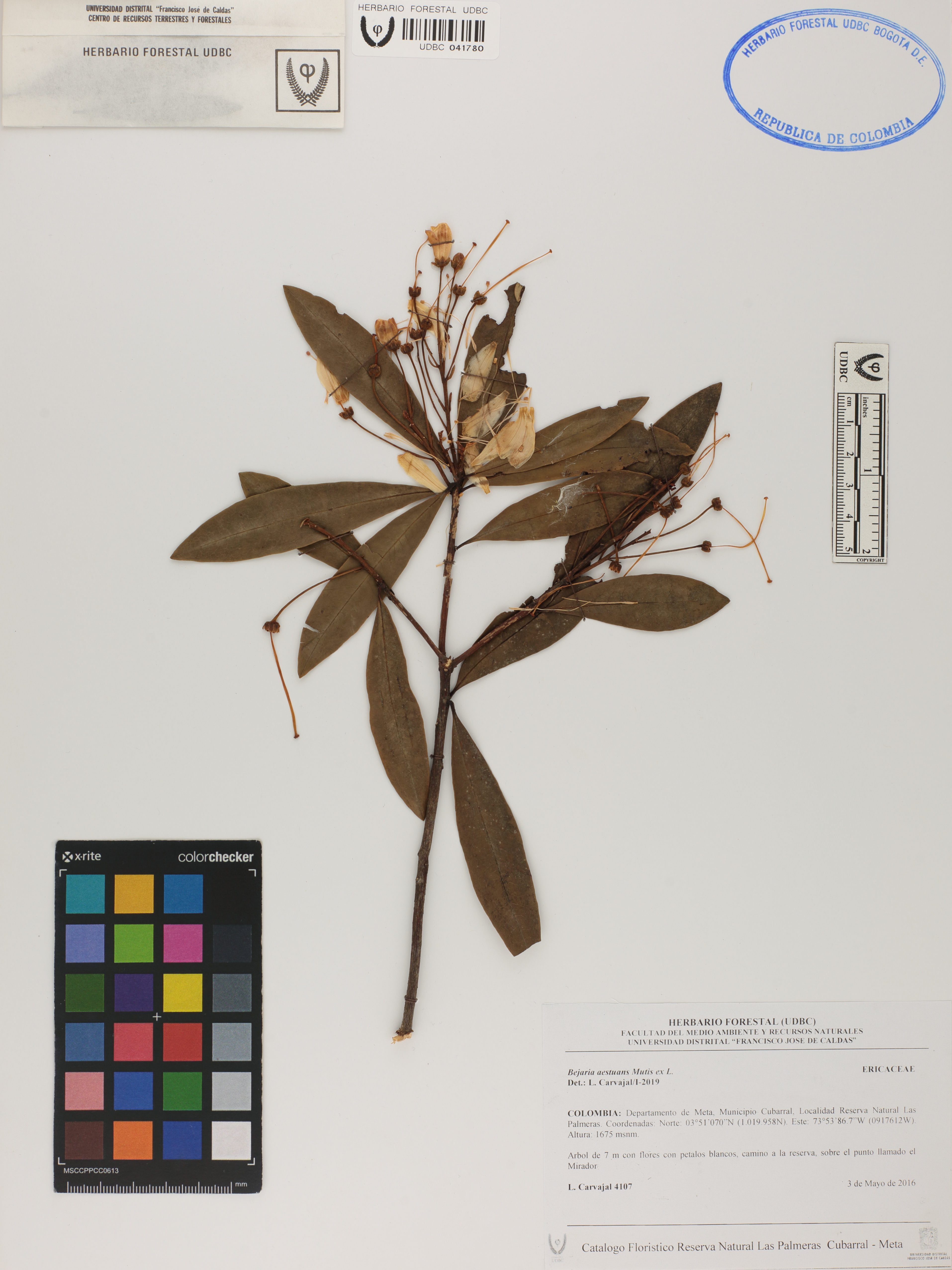 Fotografía del ejemplar Carvajal, J. 4107, determinado como Bejaria aestuans en el año 2019