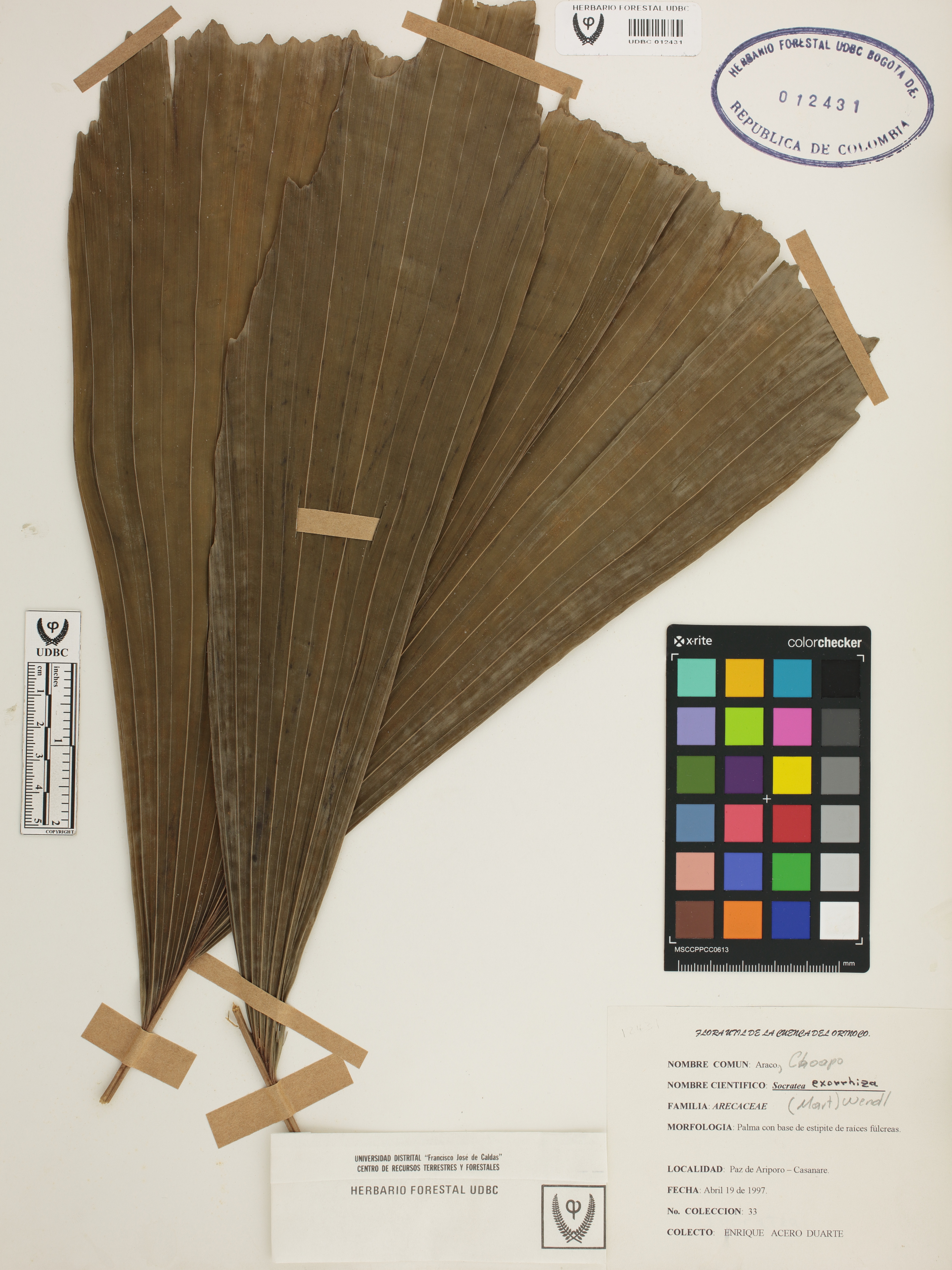 Fotografía del ejemplar Acero, E. 33, determinado como Socratea exorrhiza
