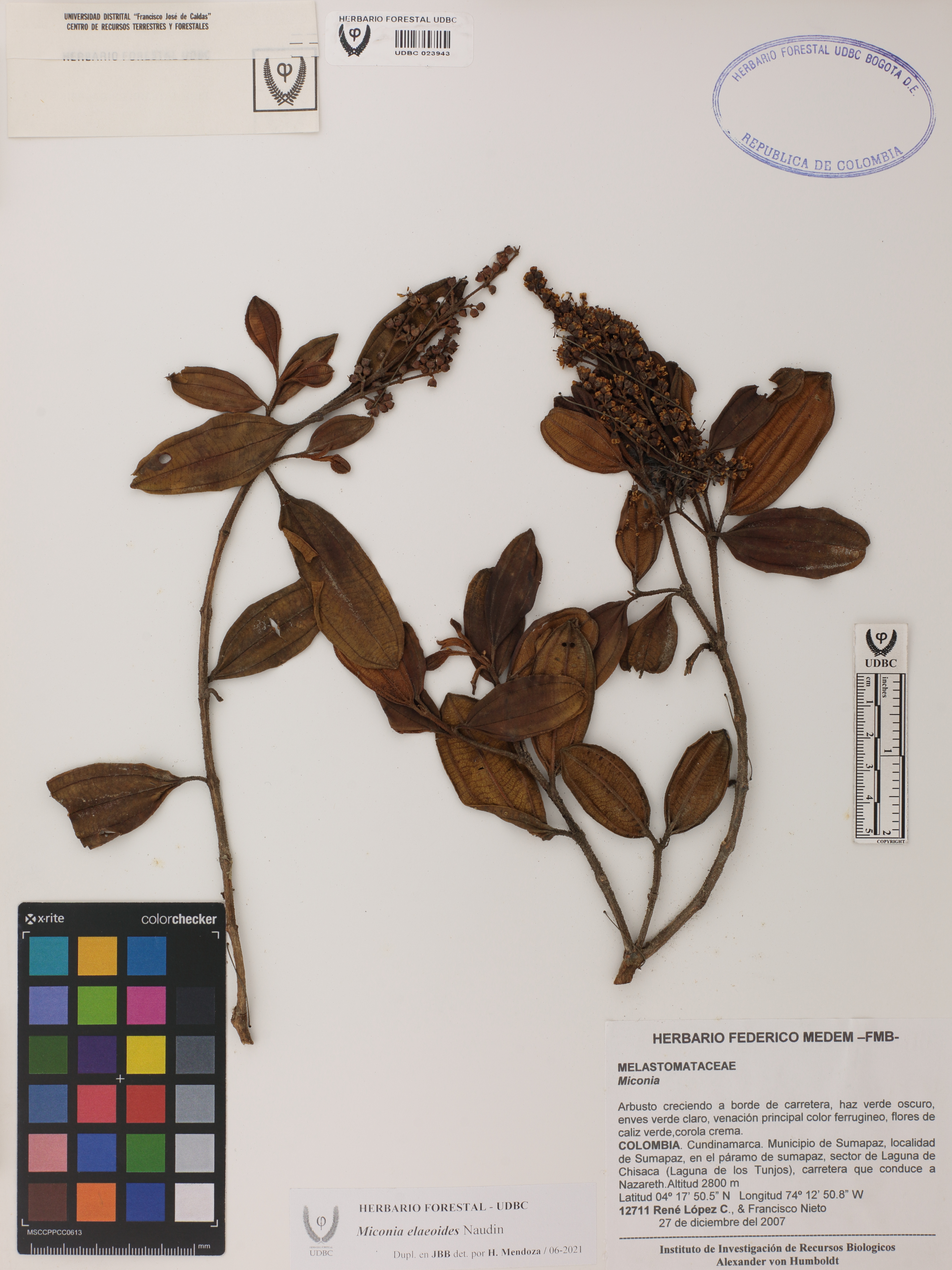 Fotografía del ejemplar López, R. 12711, determinado como Miconia elaeoides en el año 2021
