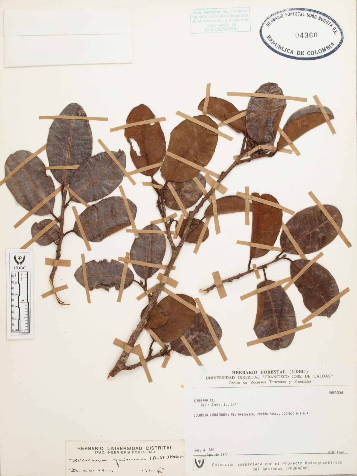 Fotografía del ejemplar Roa, A. 584, determinado como Brosimum guianense en el año 1997