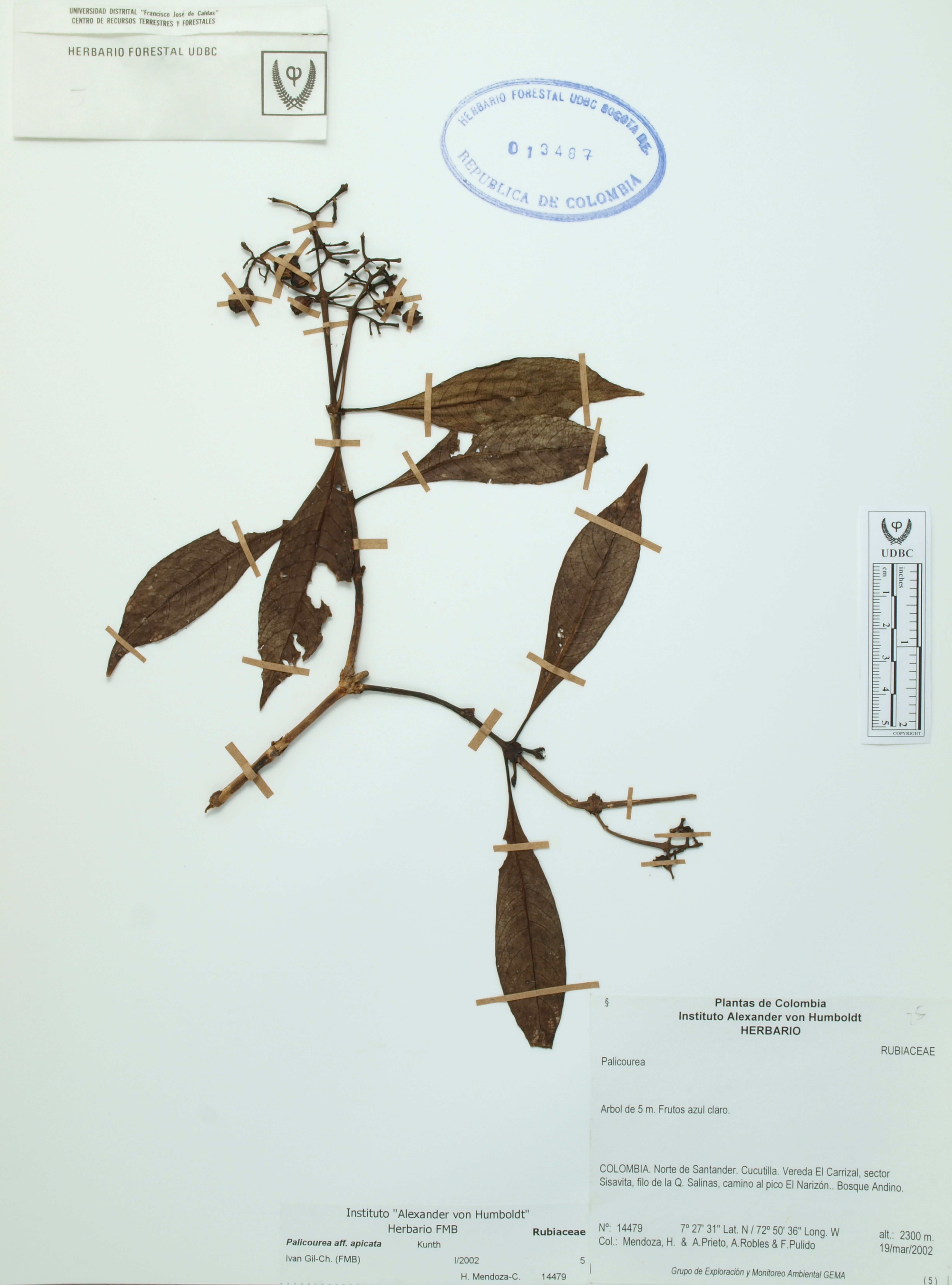 Fotografía del ejemplar Mendoza, H. 14479, determinado como Palicourea apicata en el año 2002