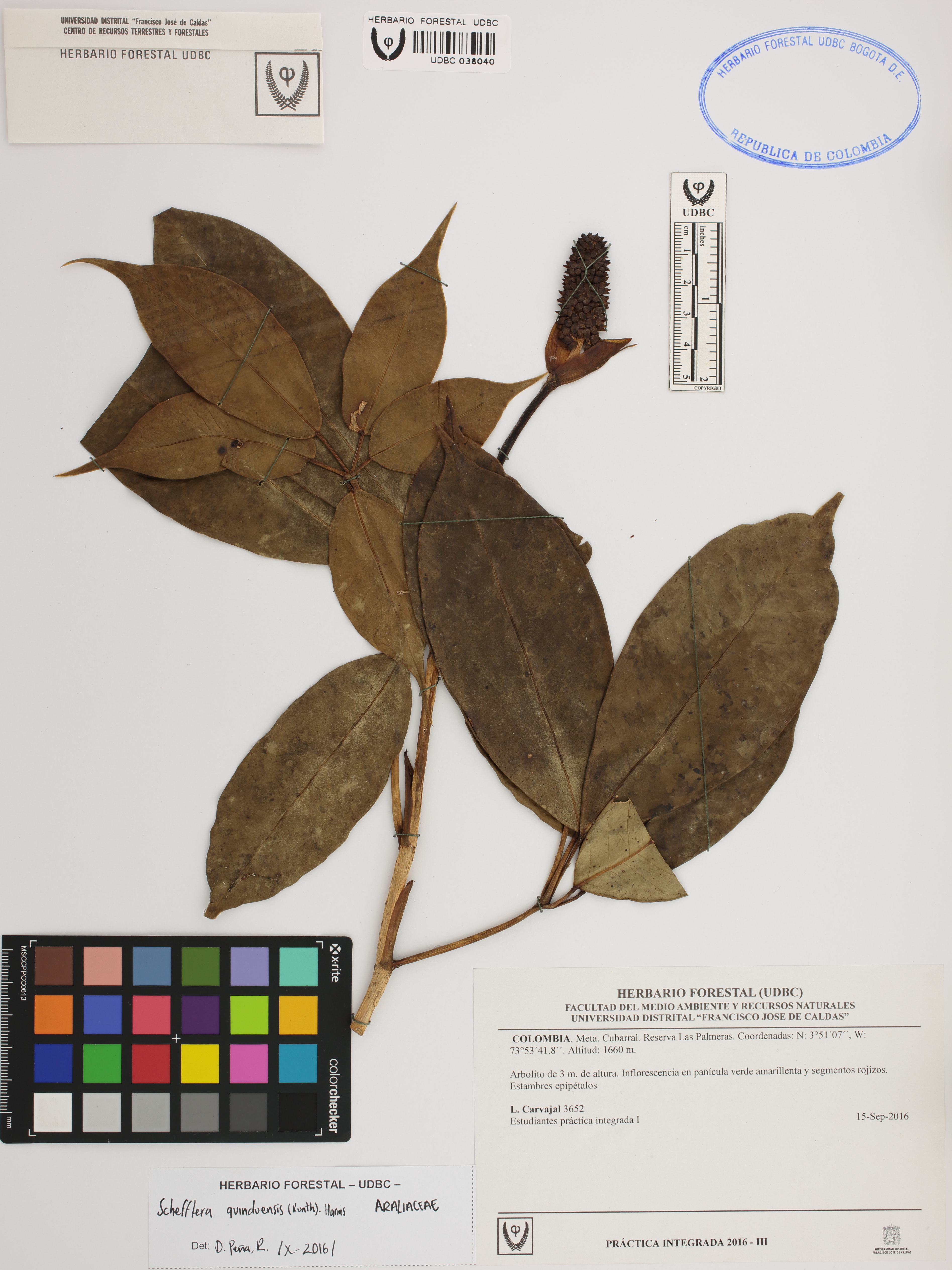 | dc.description | Fotografía del ejemplar Carvajal, L. 3652, determinado como Sciodaphyllum sp. en el año 2020 | |