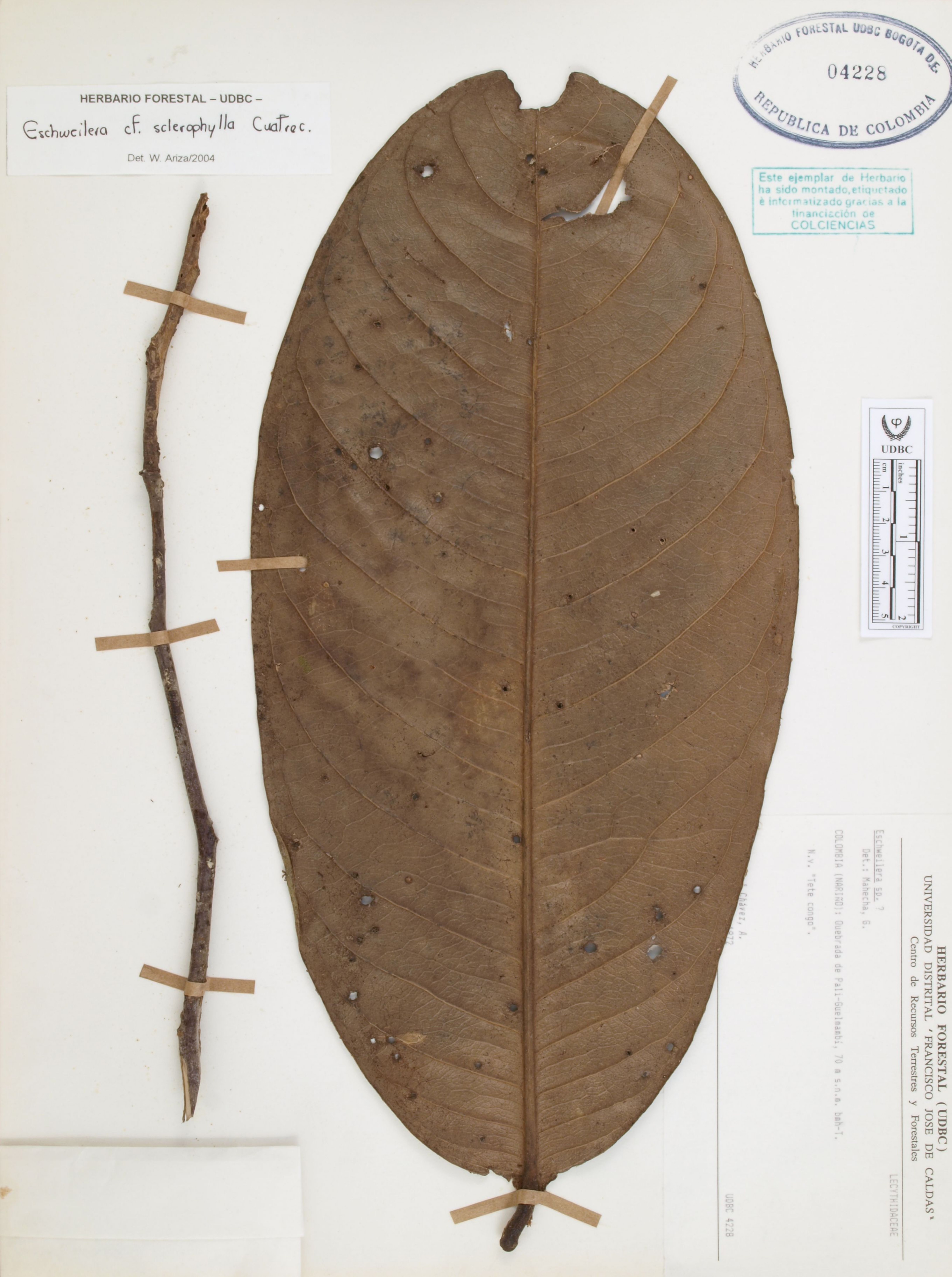 Fotografía del ejemplar Toledo, J., determinado como Eschweilera sclerophylla en el año 2009